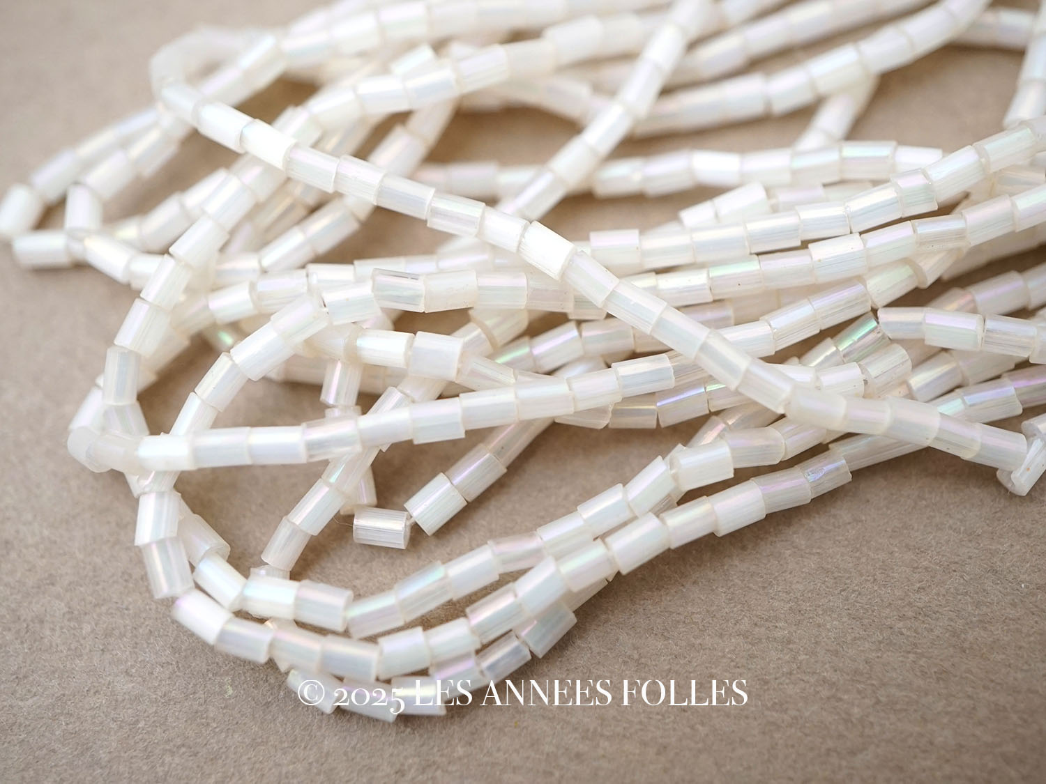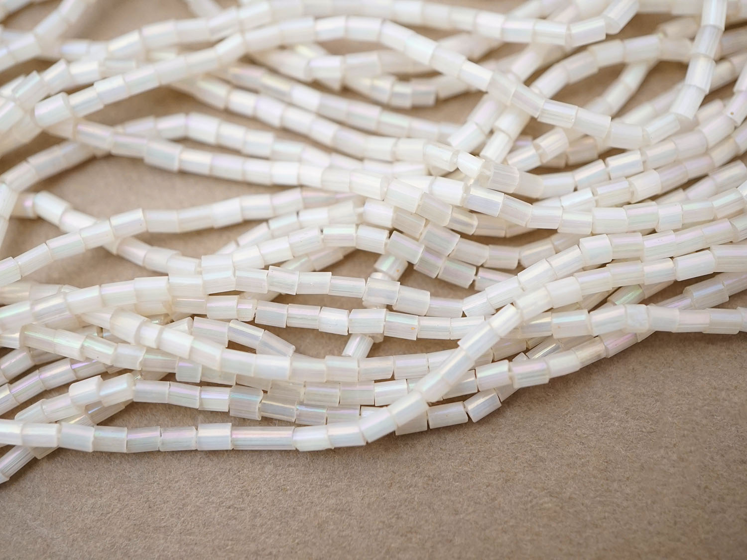 アンティーク ガラス製 オーロラ加工 サティネビーズ ホワイト オーロラ色 1cm=4粒
