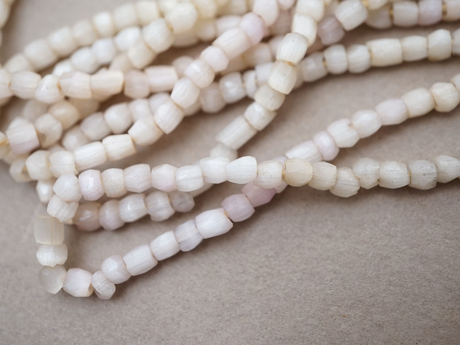 アンティーク ガラス製 サティネビーズ カット入り オフホワイト 1cm=3粒 [AM15908]