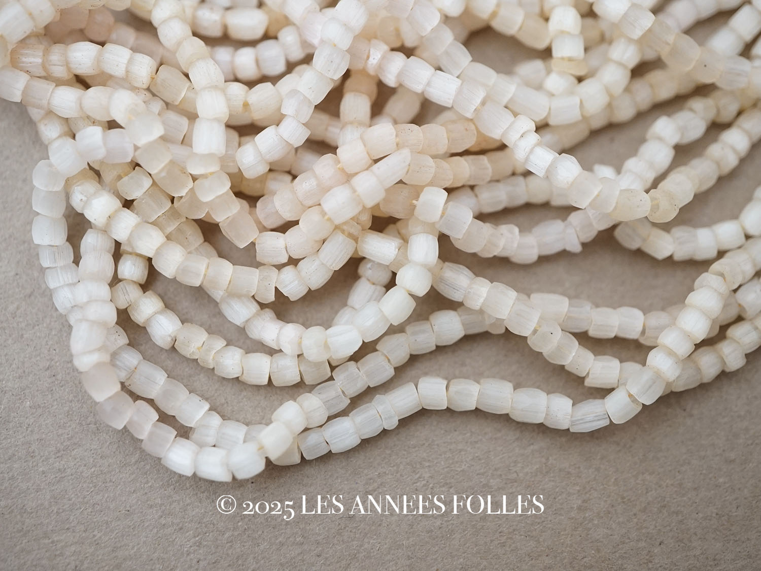 アンティーク ガラス製 サティネビーズ カット入り オフホワイト 1cm=5粒