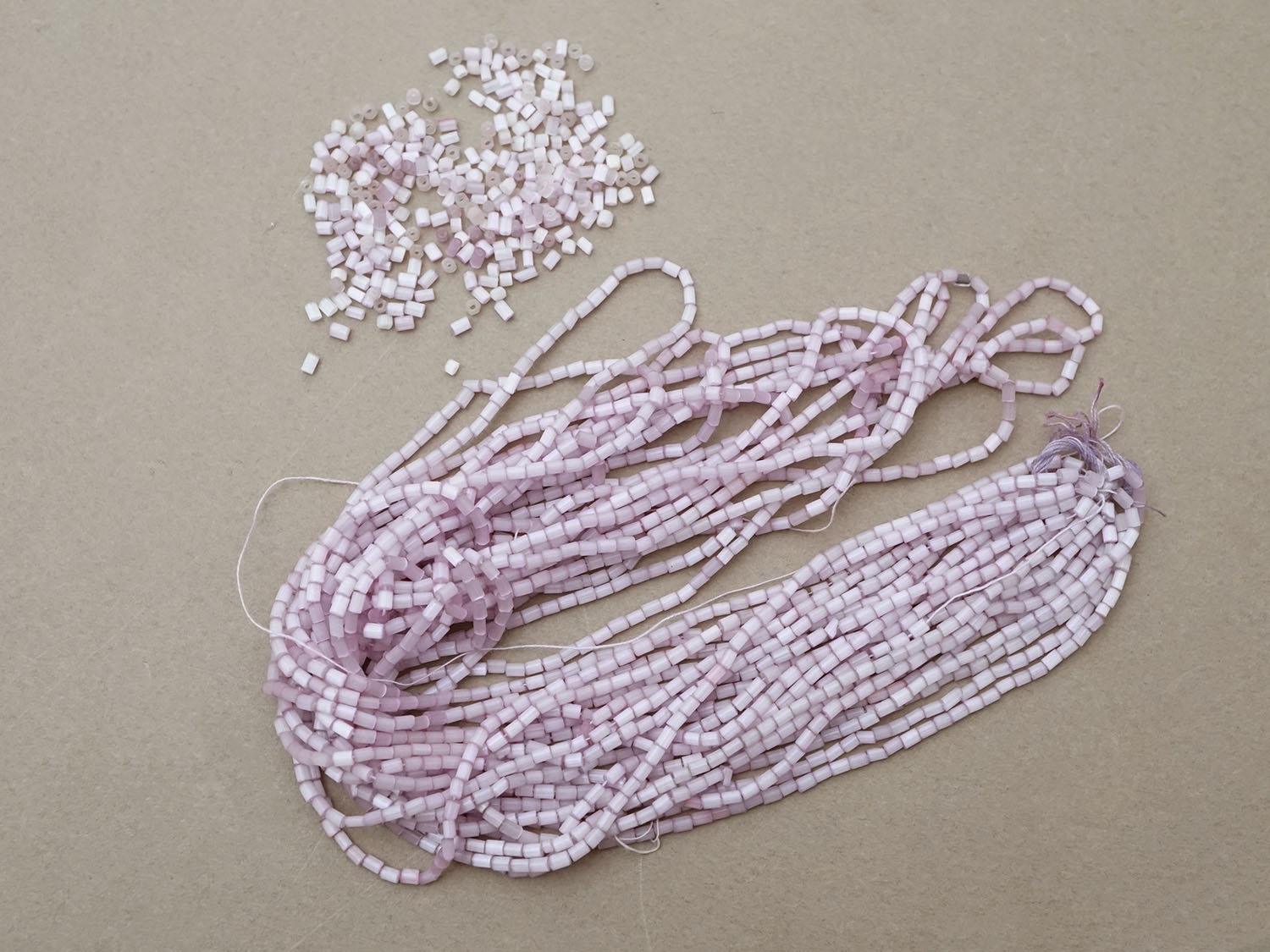 ビーズの直径は2mmで、1cmに4粒並びます。