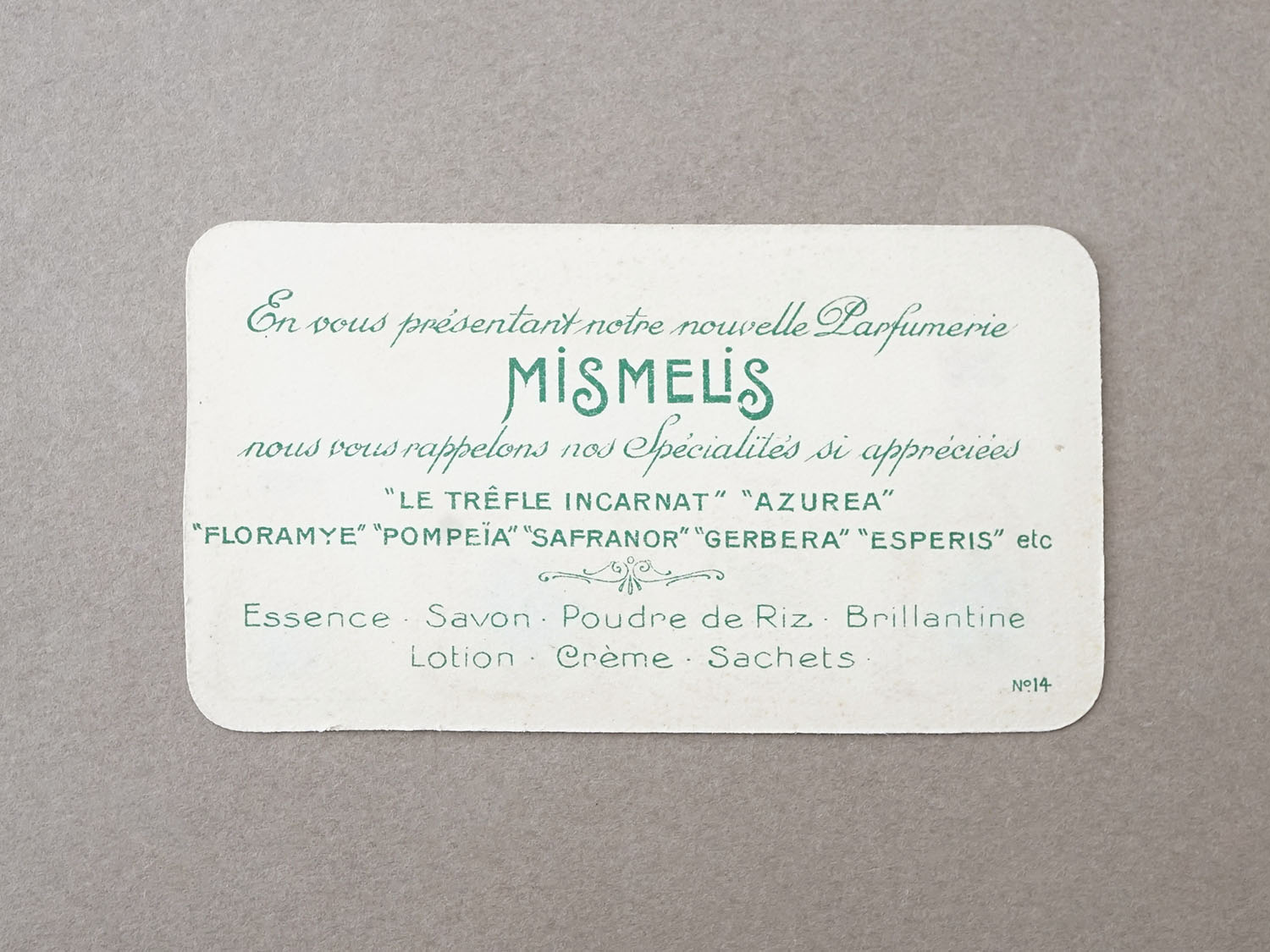 1913年に発表された MISMELIS と呼ばれる香水のパフュームカードです。