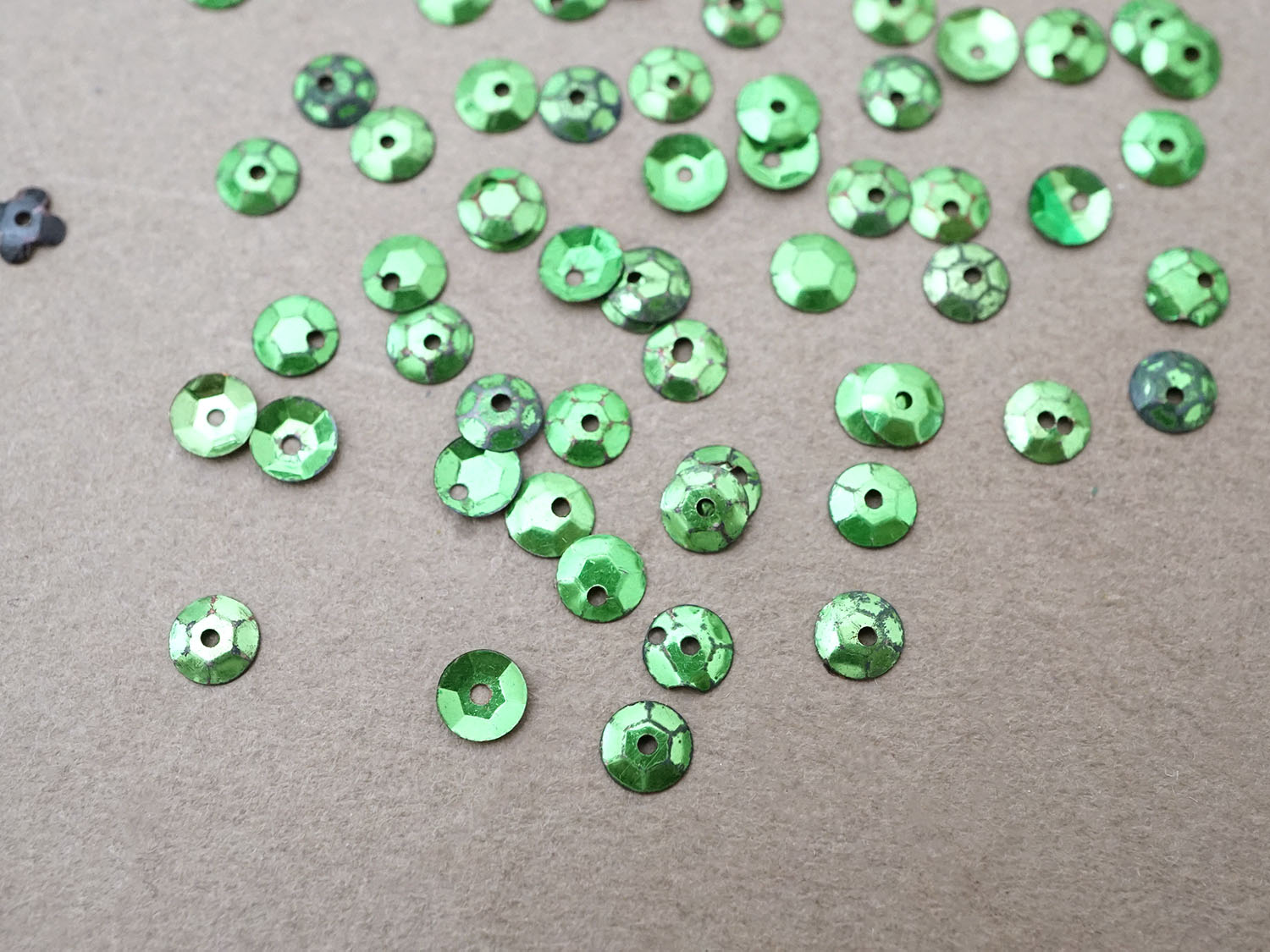星の淡いアップルグリーンのスパンコールは5mmで、