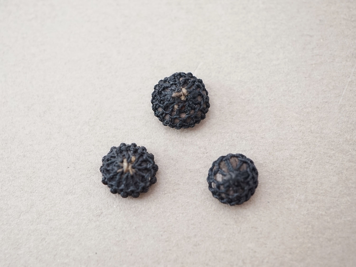 19世紀末 アンティーク 小さな編み込みボタン 黒 3ピースのセット 9〜10mm [AM15920]