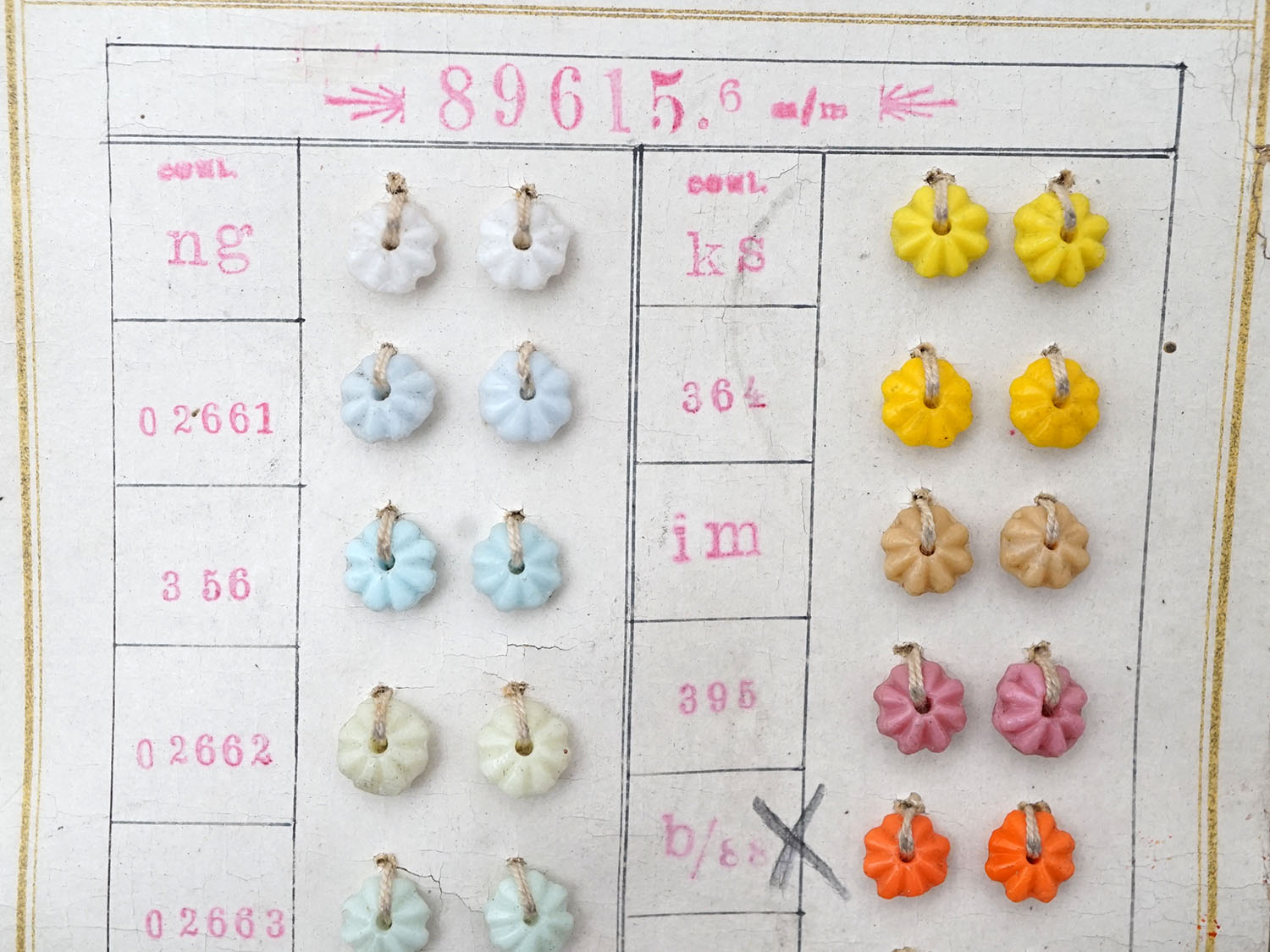 19世紀末、チェコのヤブロネッツのAS&JHJS社のガラスビーズのサンプラーです。