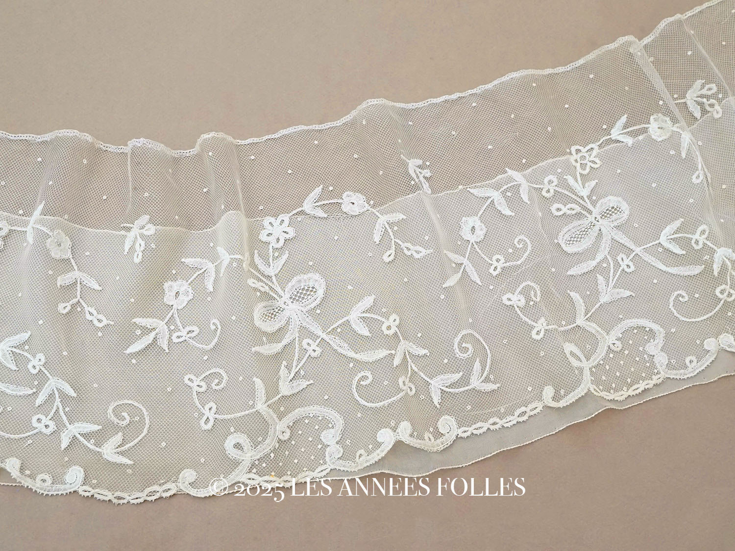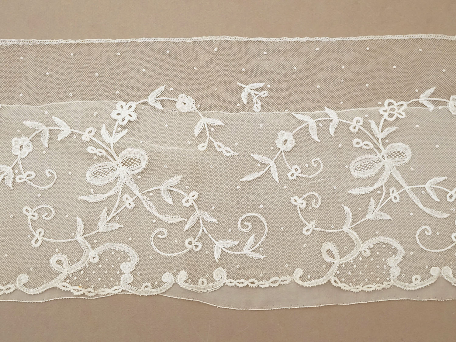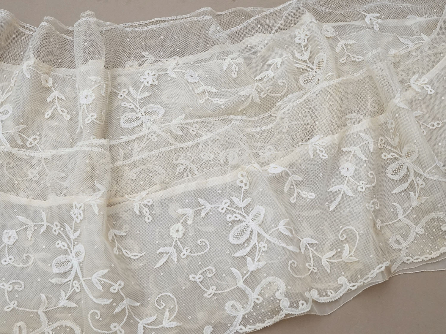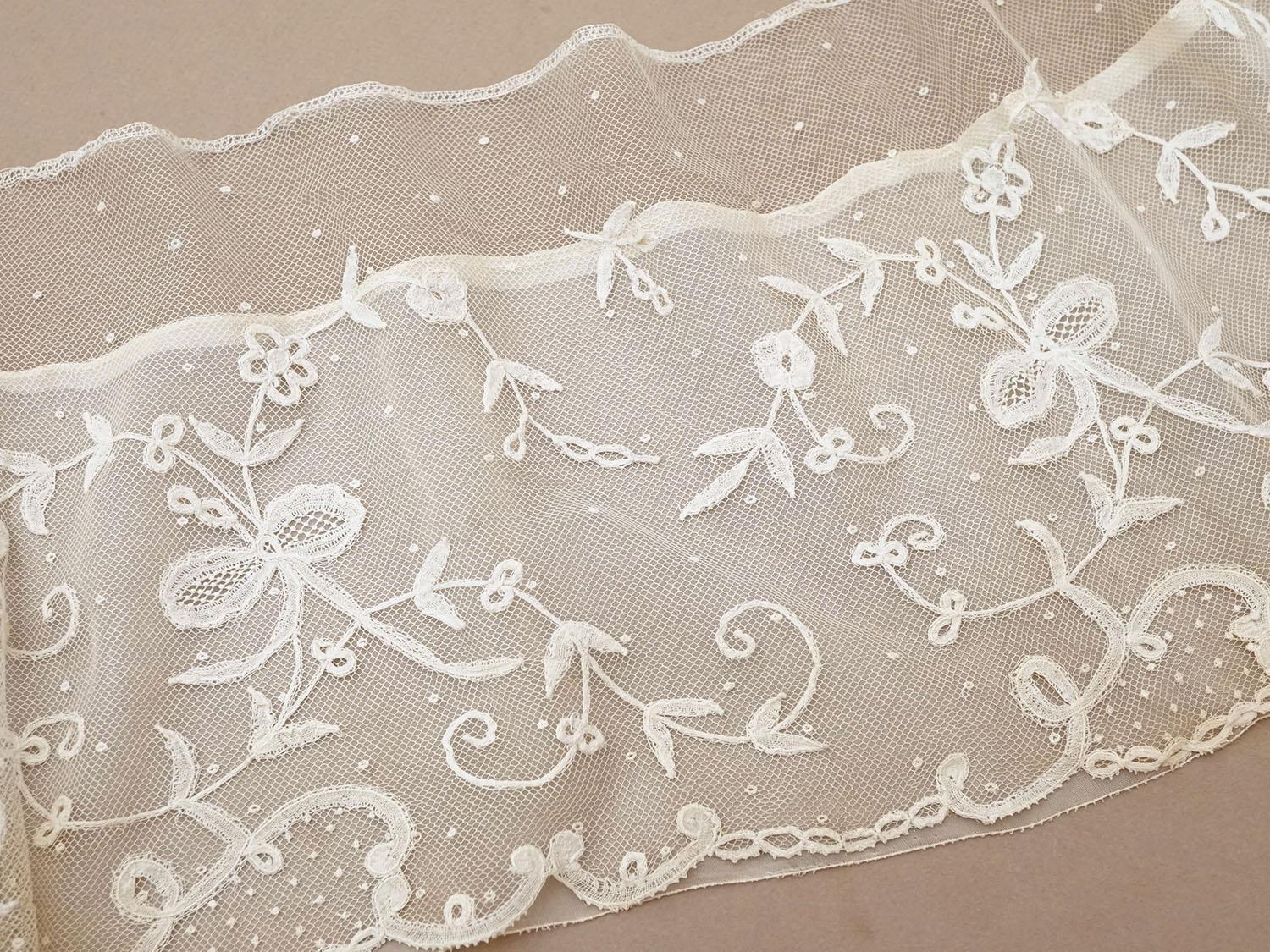 19世紀末 アンティーク ドレスパーツ リボンのモチーフ アプリカシオン・アングルテール 4.2m 幅広22.5cmオフホワイト ボビンレース