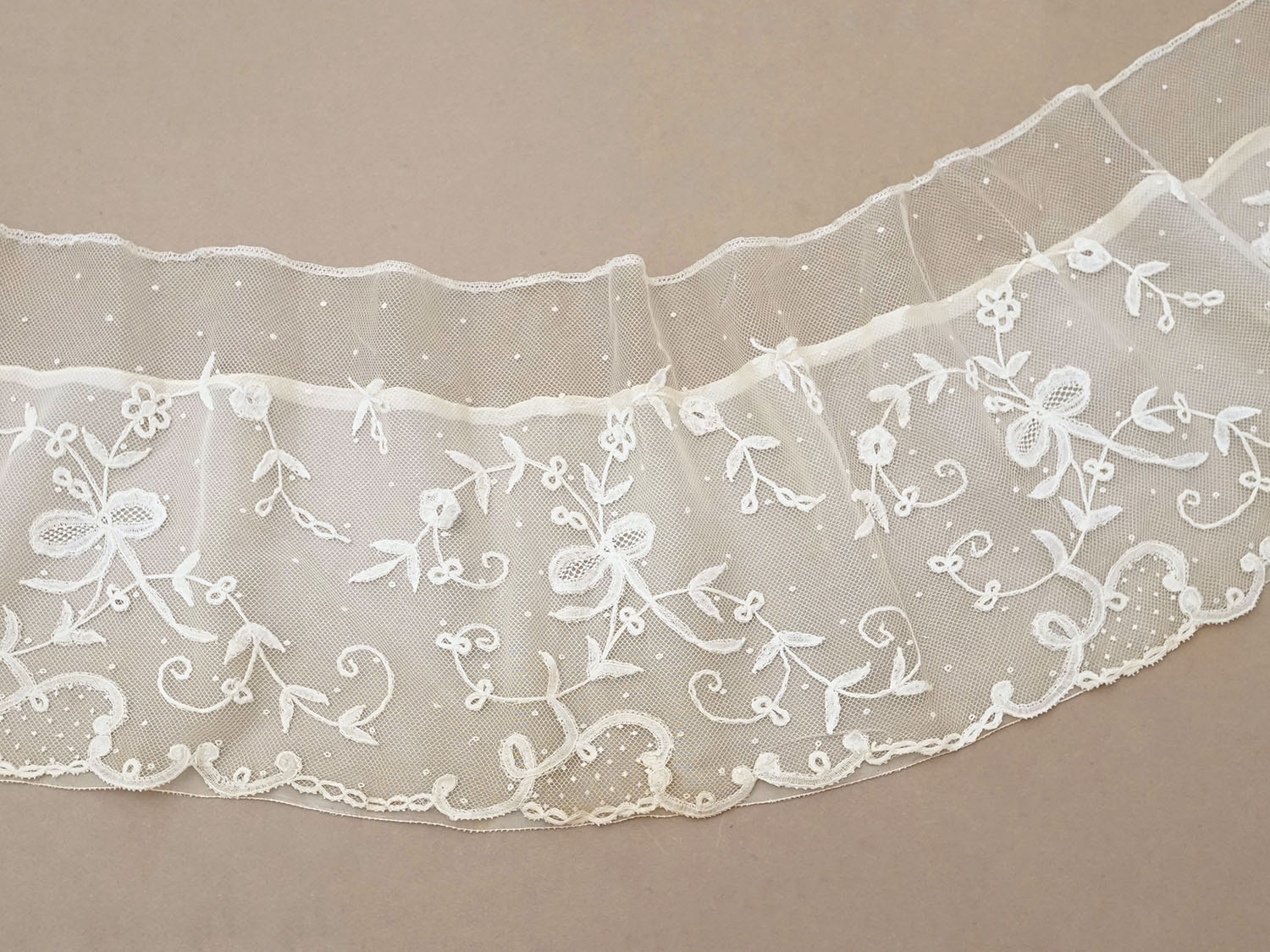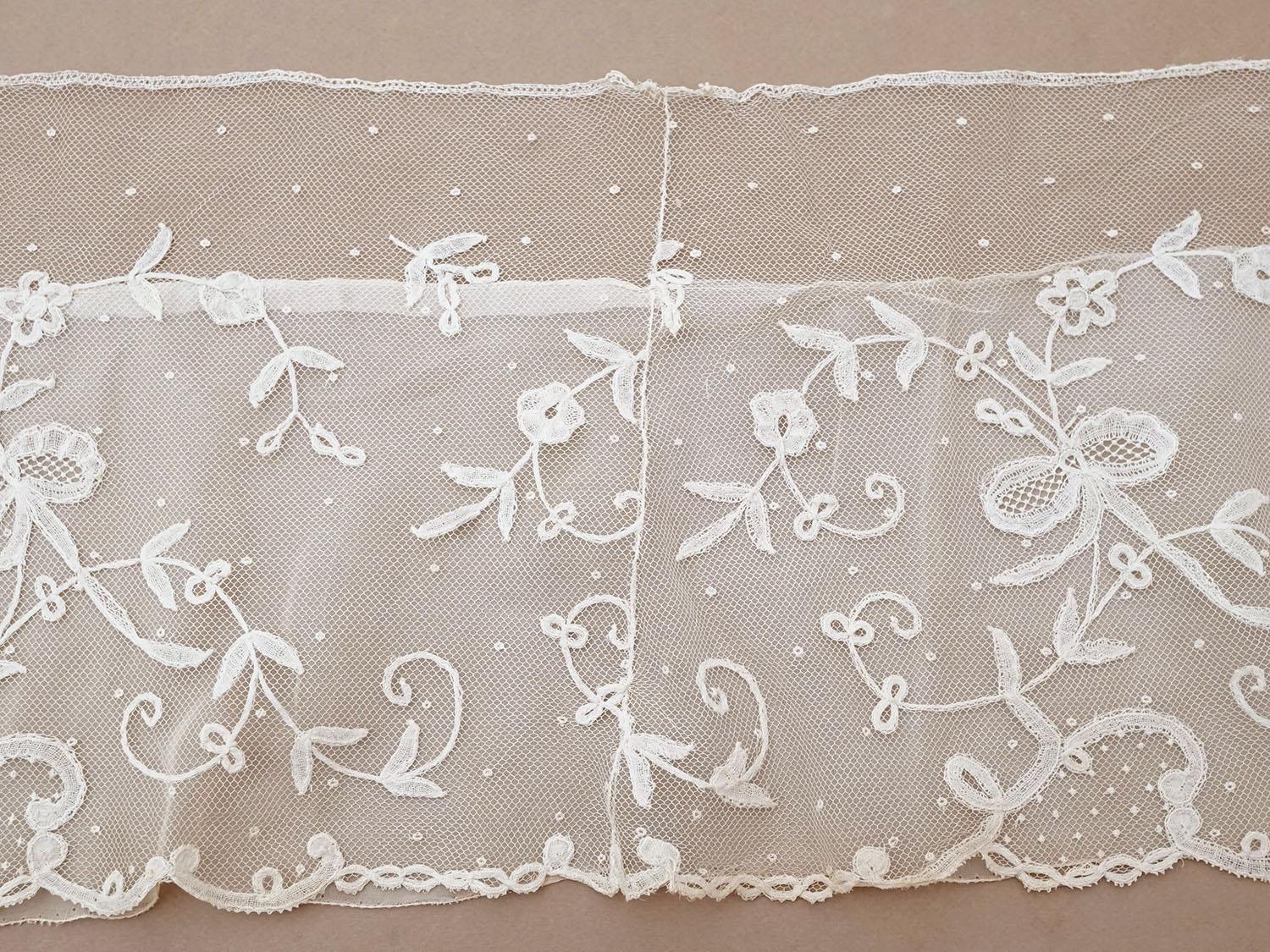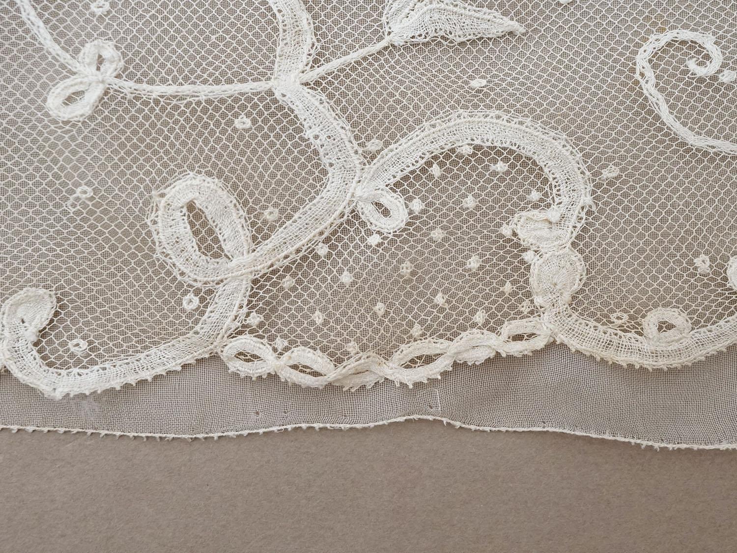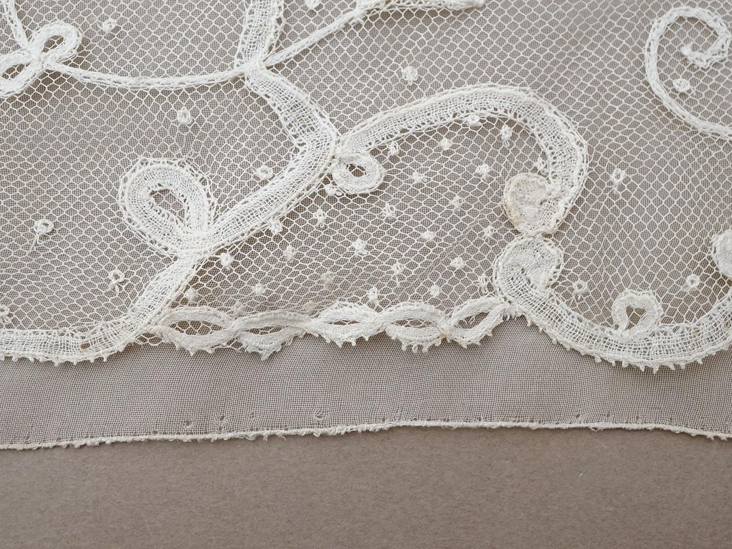 19世紀末 アンティーク ドレスパーツ リボンのモチーフ アプリカシオン・アングルテール 4.2m 幅広22.5cmオフホワイト ボビンレース