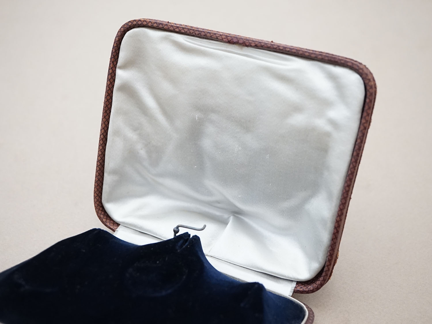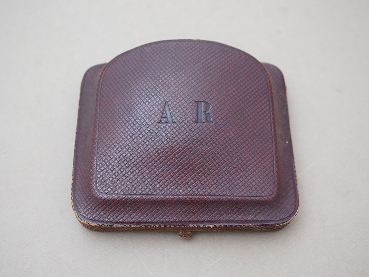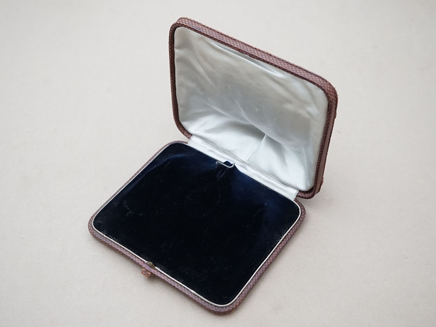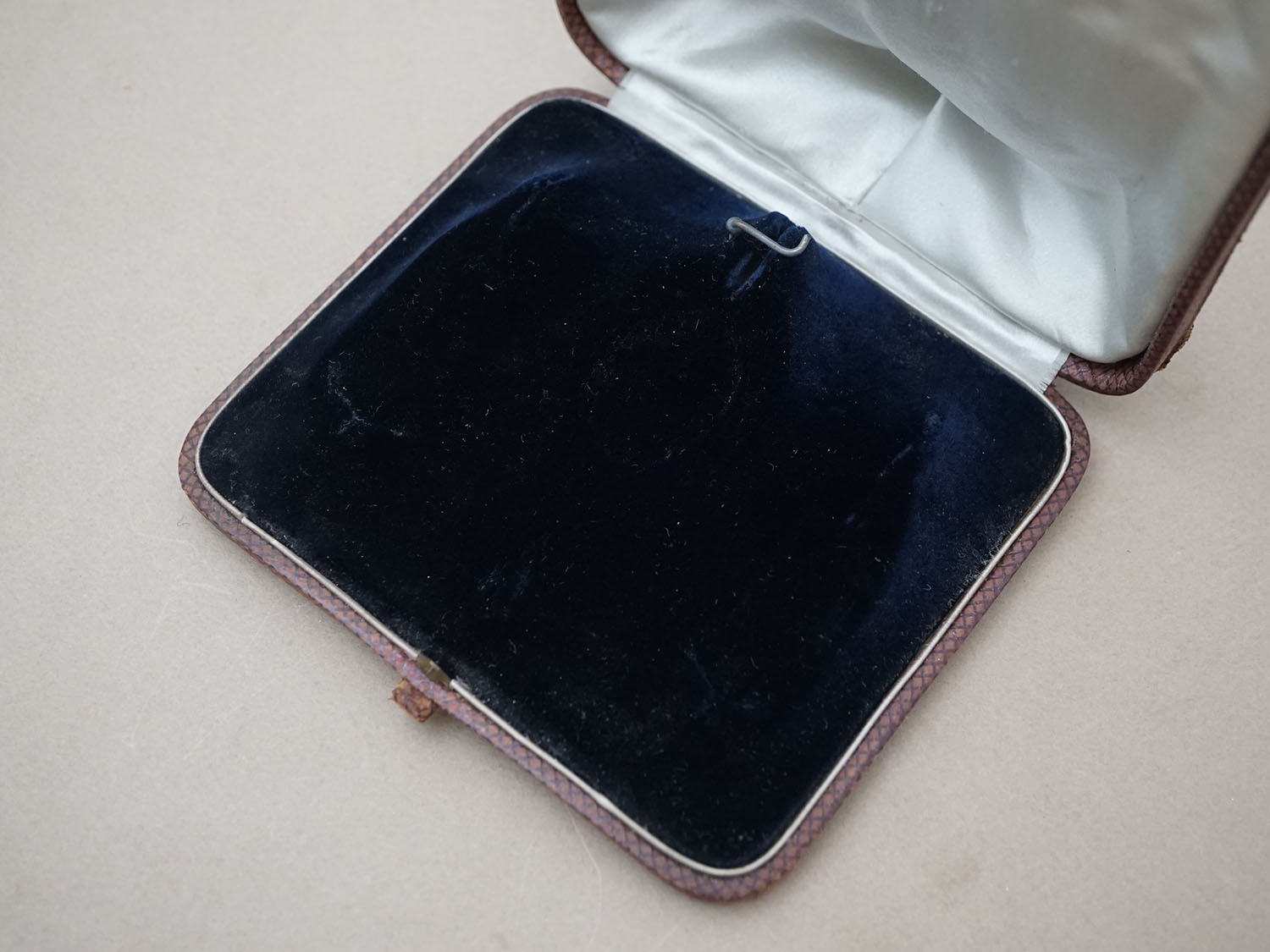 19世紀 アンティーク AR イニシャル入り ジュエリーボックス ボルドーブラウン ペンダント&ピアス