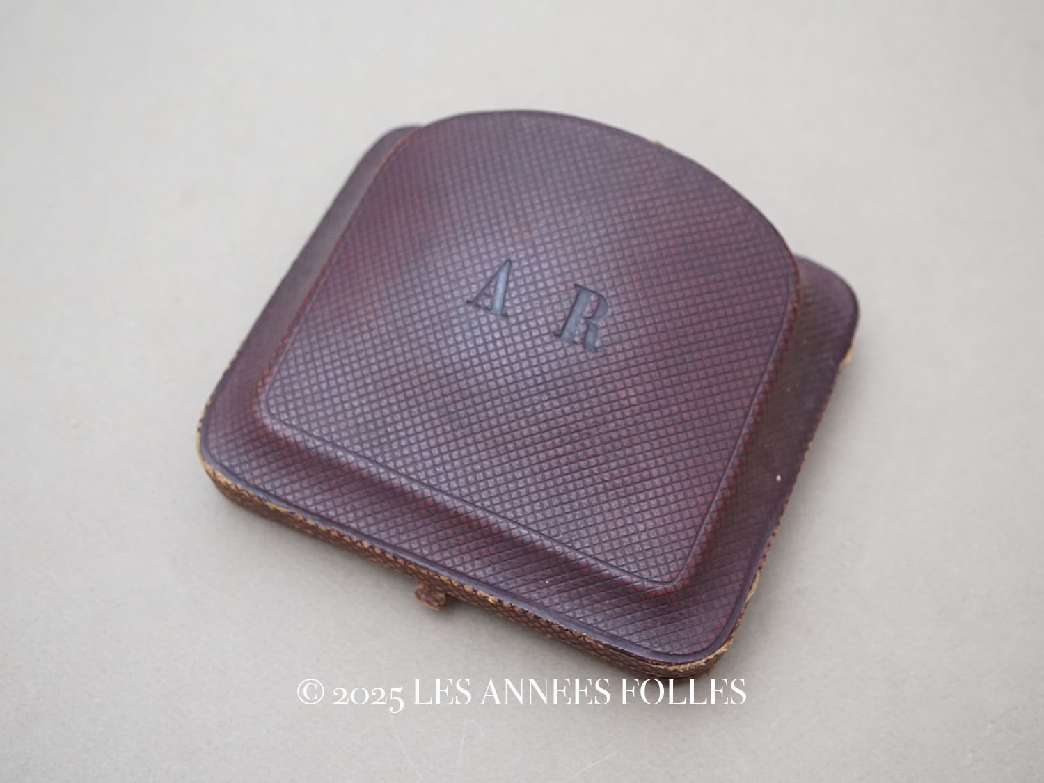 19世紀 アンティーク AR イニシャル入り ジュエリーボックス ボルドーブラウン ペンダント&ピアス [AB5038]