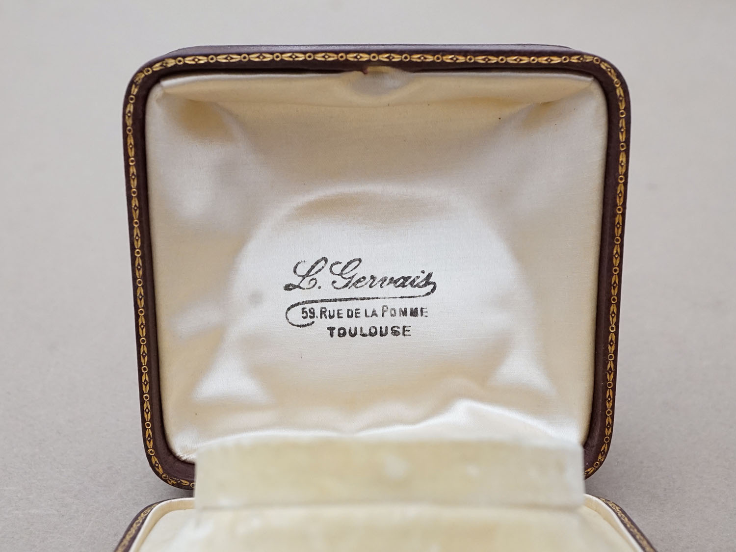 蓋の内側はオフホワイトのシルクサテン地と