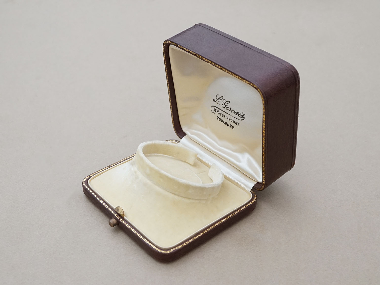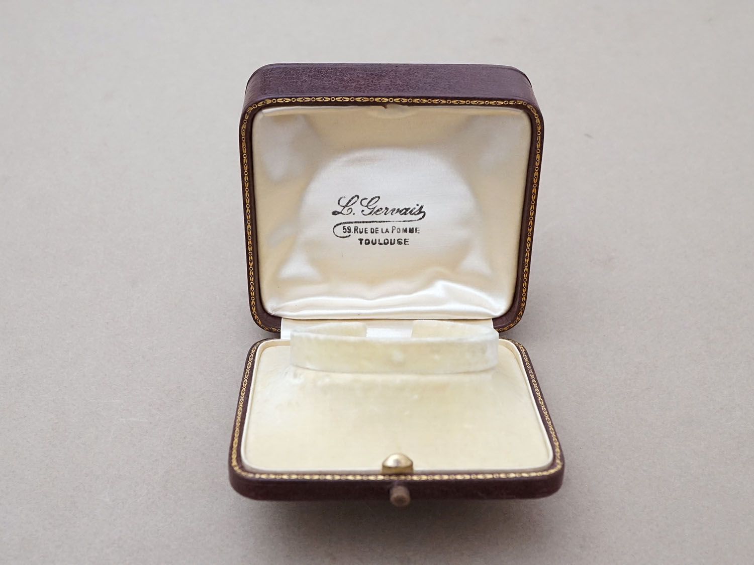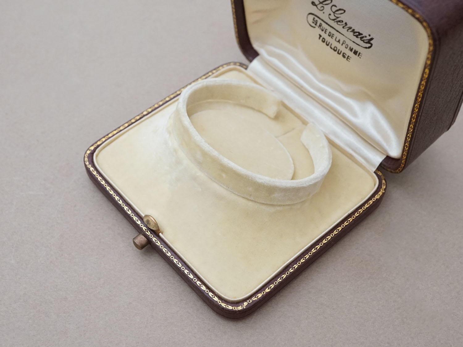 アンティーク 金彩入り 本革製 ジュエリーボックス ボルドー ブレスレット用