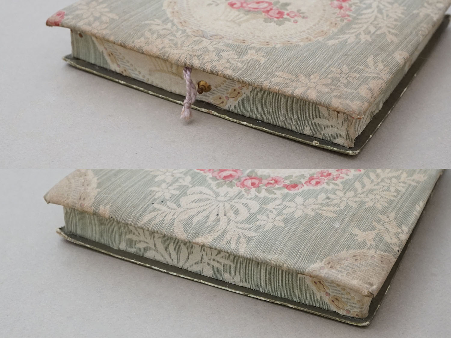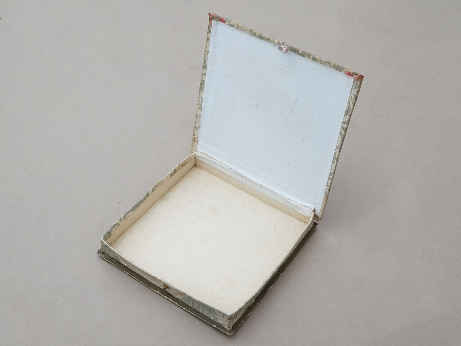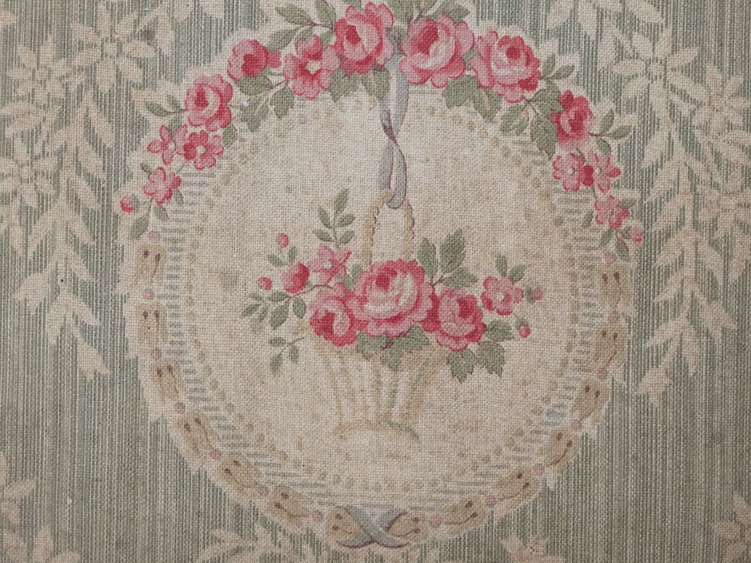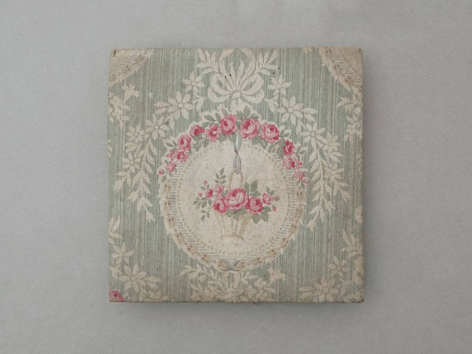 アンティーク 薔薇の花かごのメダイヨン カルトナージュボックス オリーブグリーン