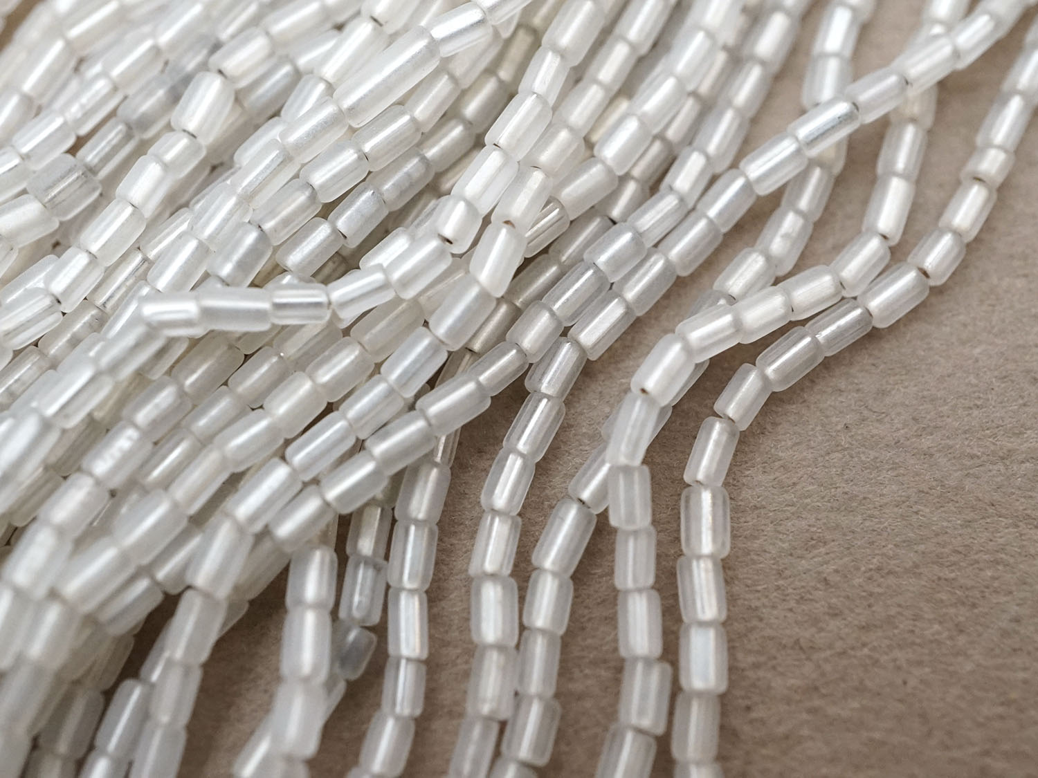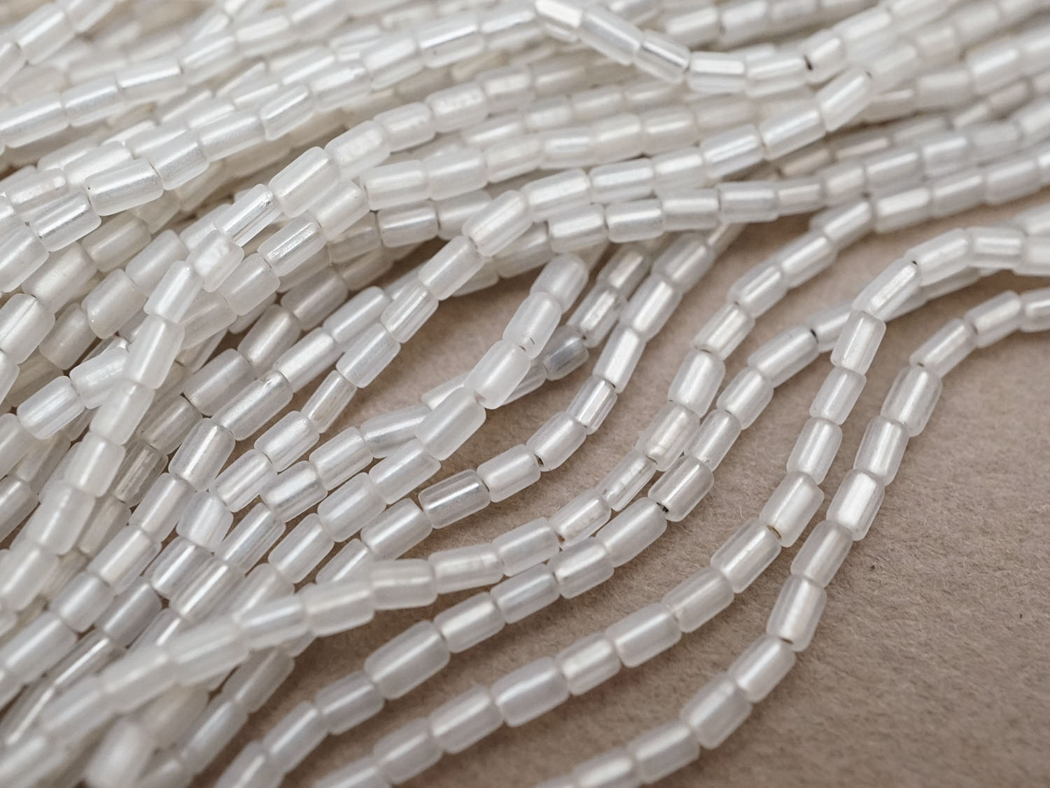 磨りガラス(半透明のガラス)の内側がシルバーに色付けされたシードビーズ36gです。