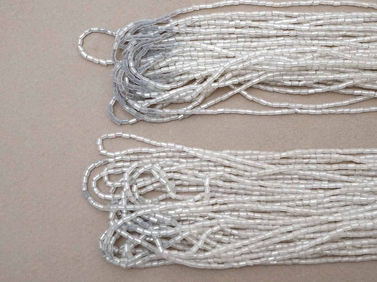 ビーズの束の下部に黒っぽい変色が見られますが、