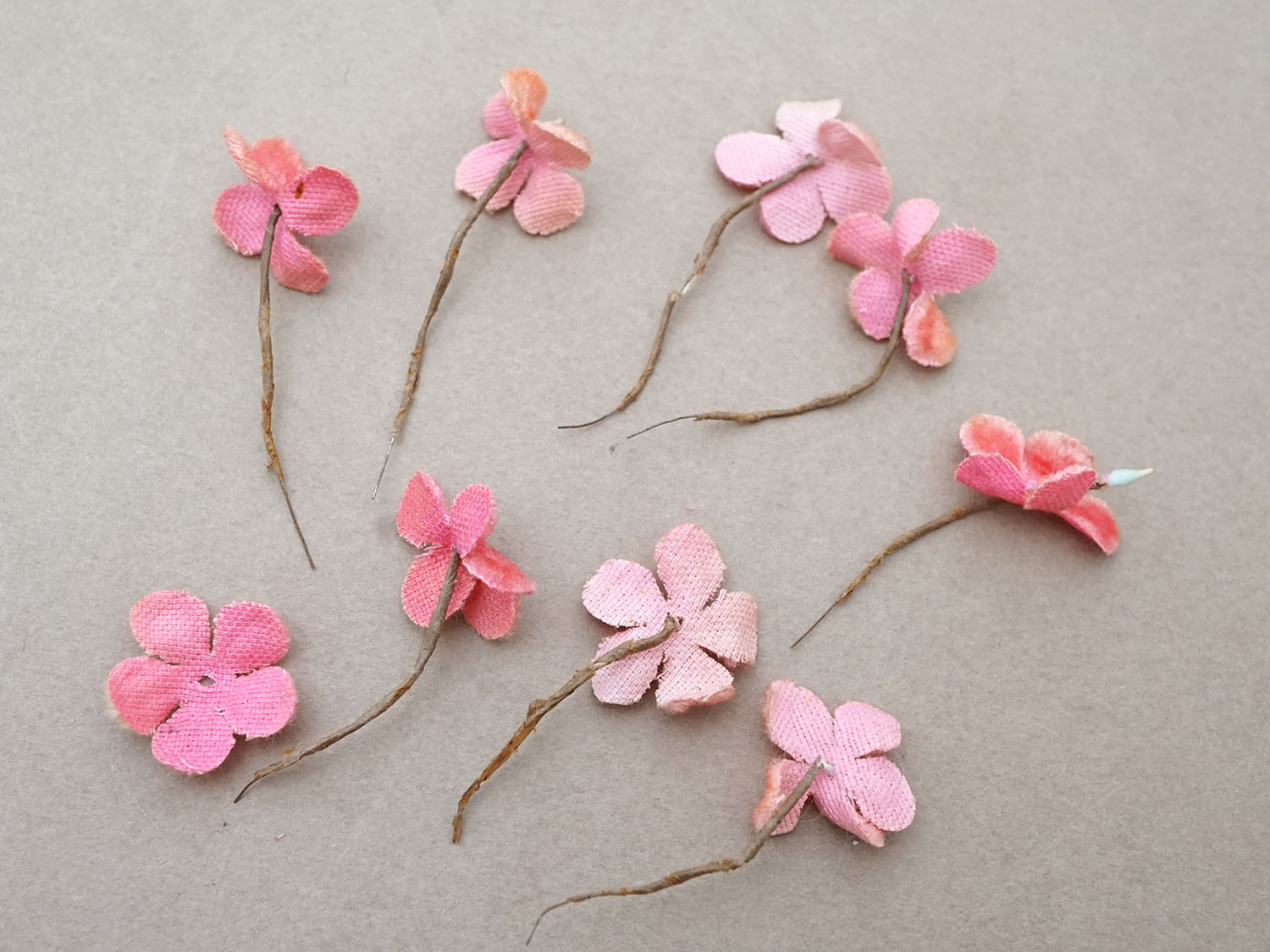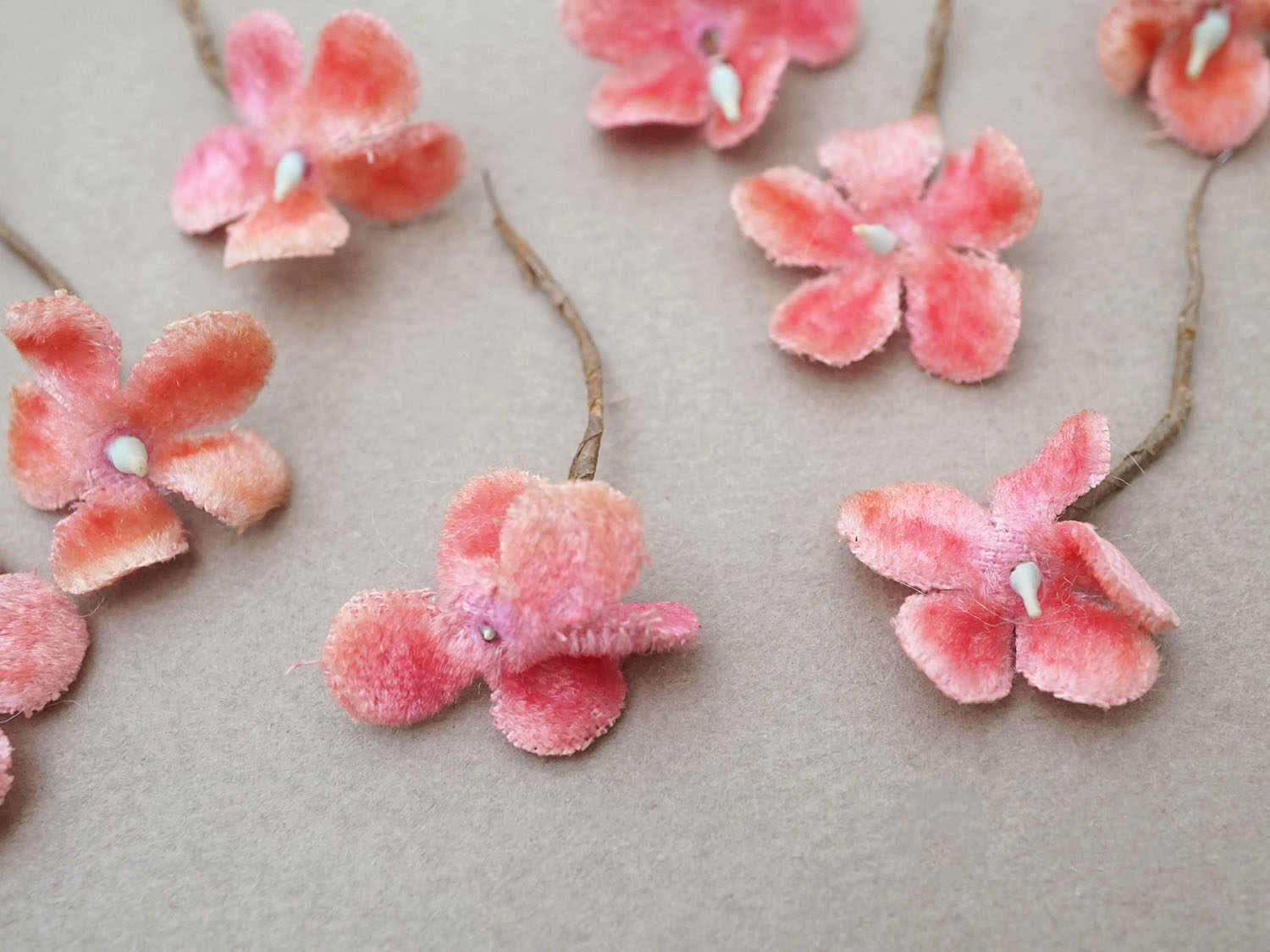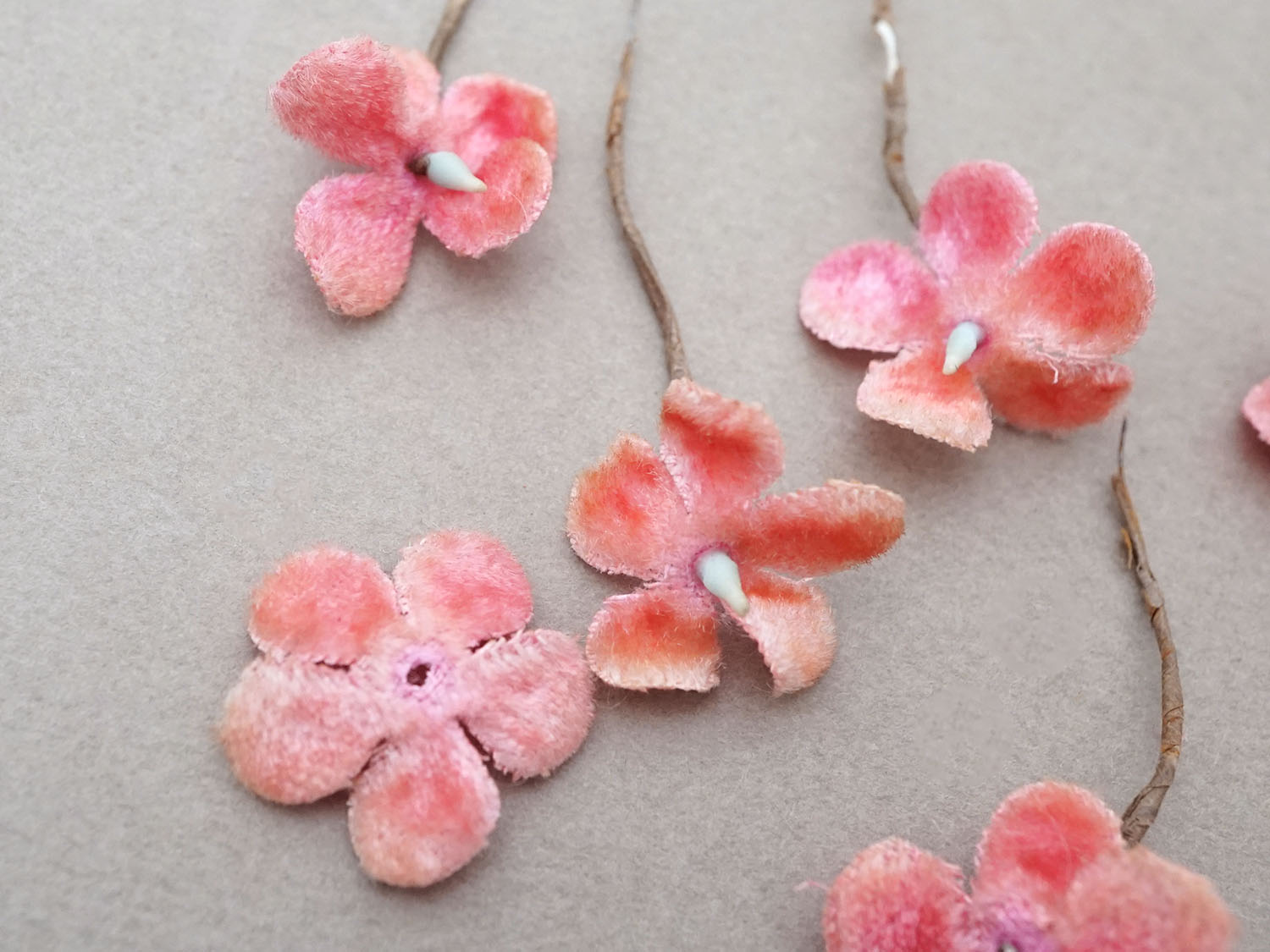 【クリスマスセール2025対象外】アンティーク ベルベットの布花 9ピースのセット ピンク