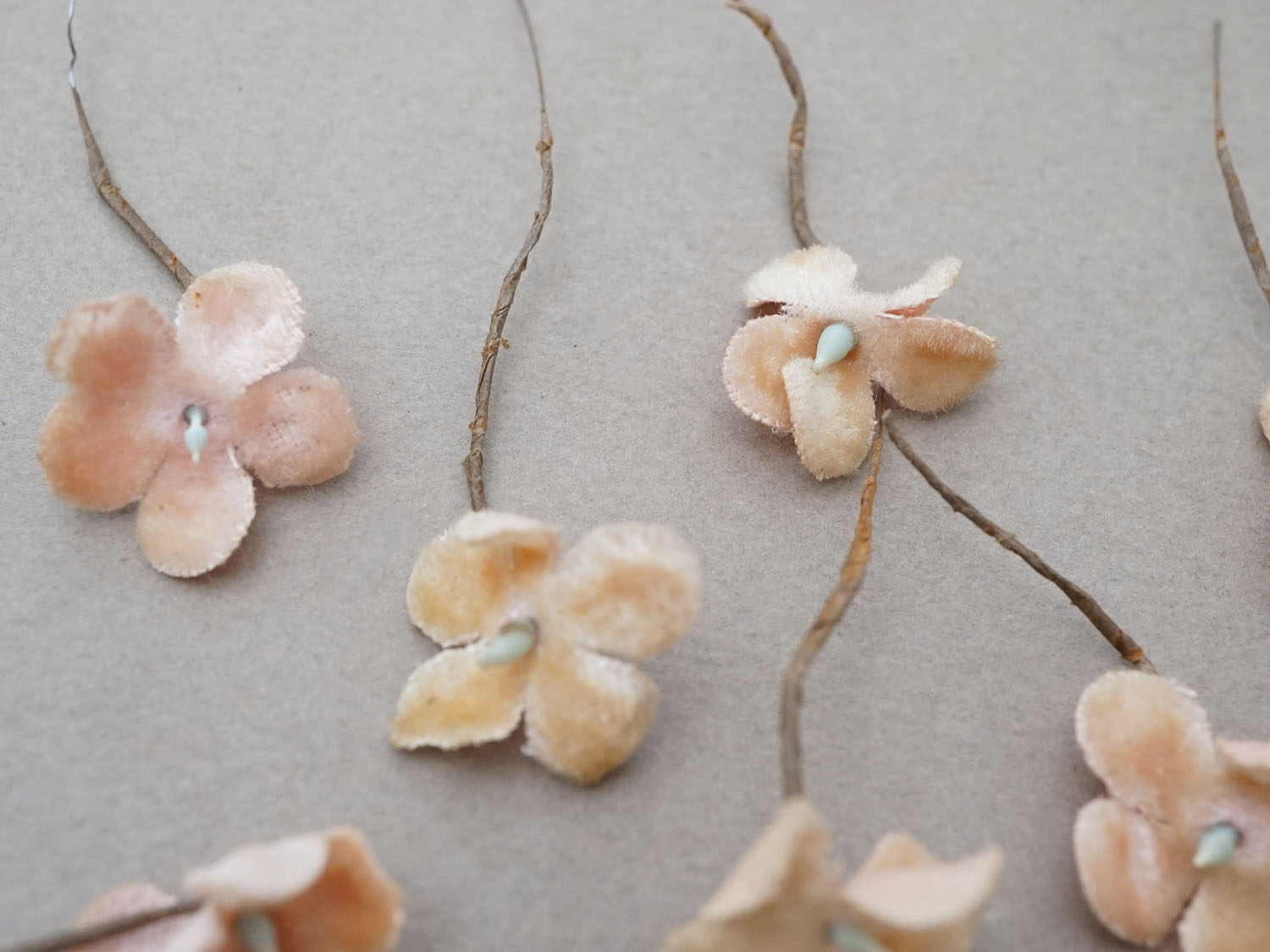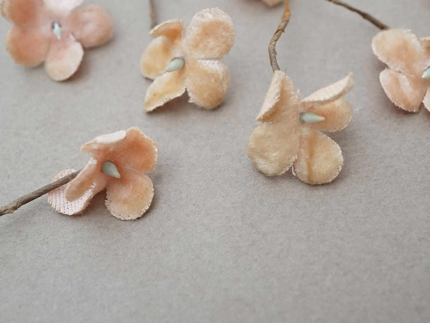 【クリスマスセール2025対象外】アンティーク ベルベットの布花 9ピースのセット ピーチピンク
