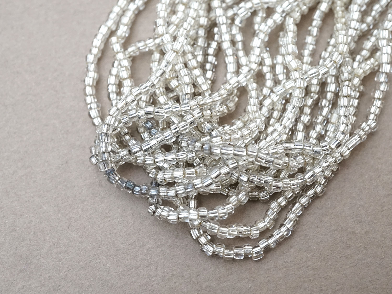 アンティーク ライン入り クリア&シルバー シードビーズ ガラスビーズ 63g