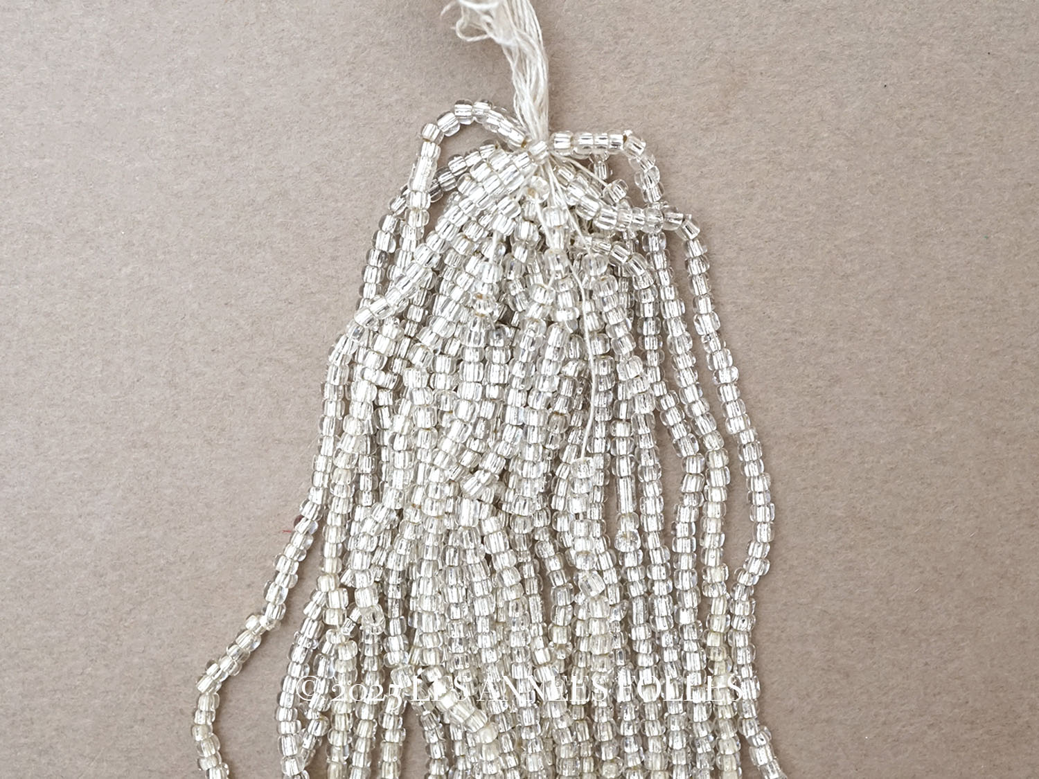 ビーズが通った約50cmの糸が9.5連束ねられています。