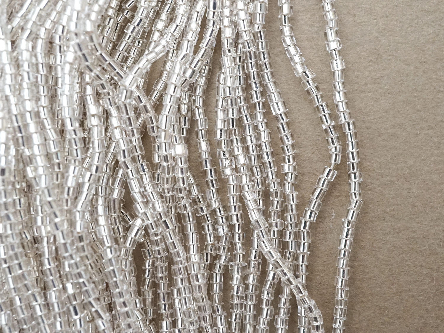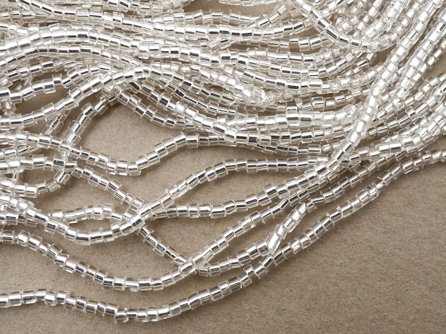 内側がシルバーに色付けされたクリアガラスのシードビーズです。