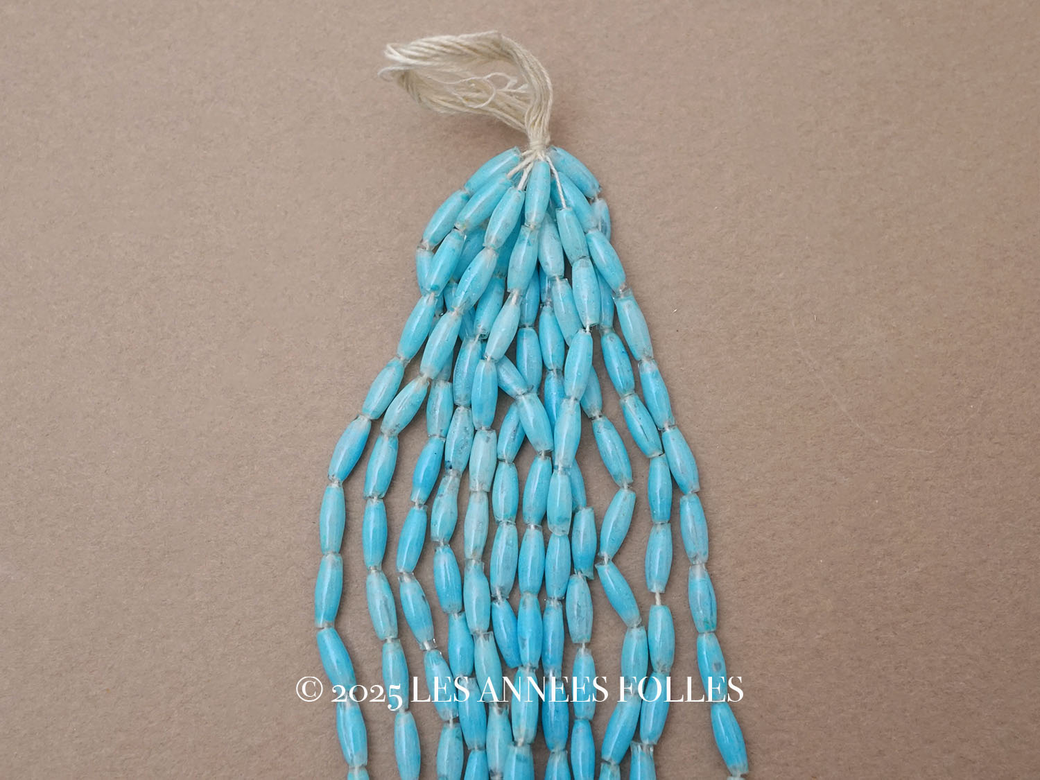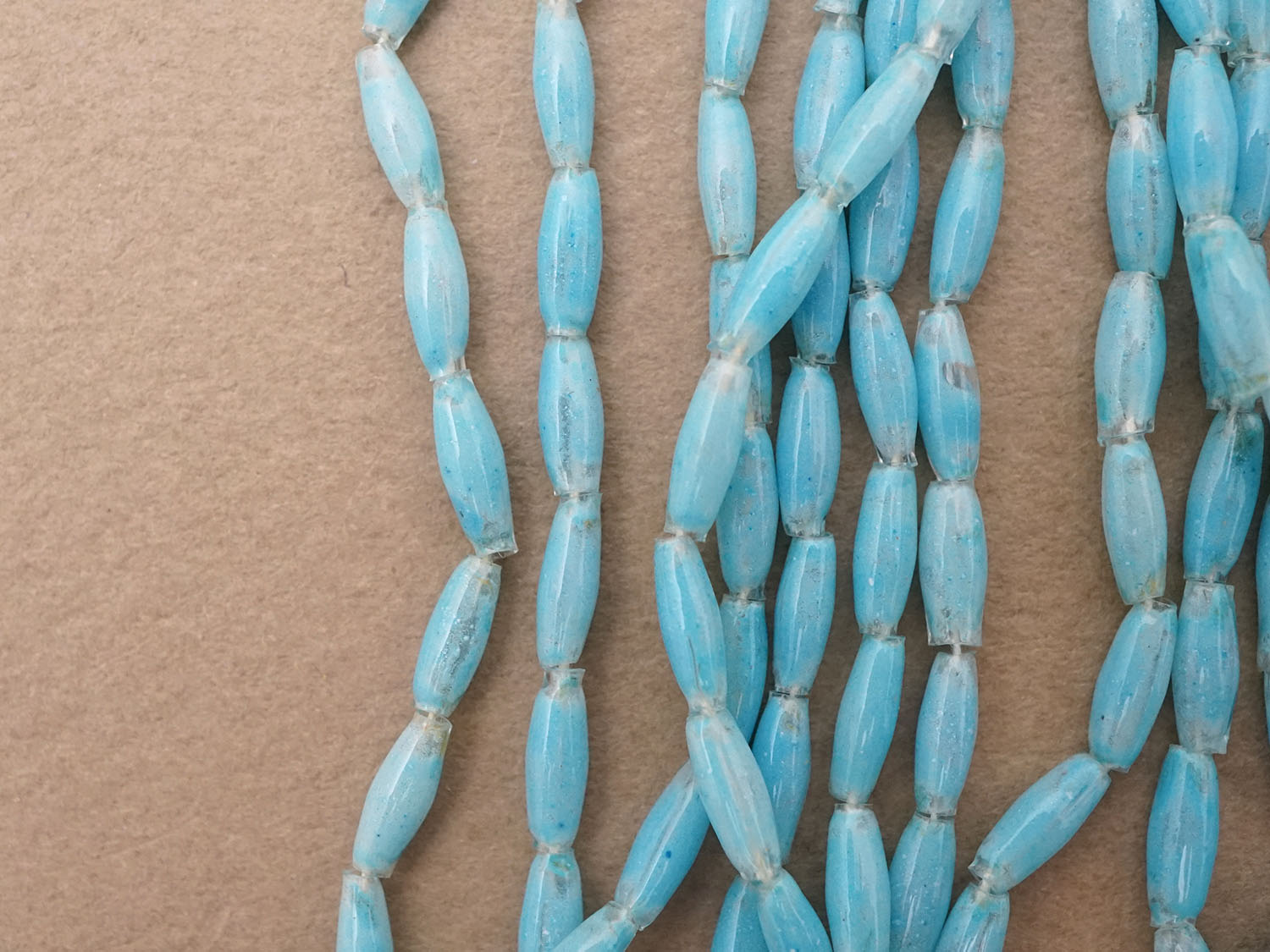 アンティーク スフレビーズ ターコイズブルー 2.5×7mm 約480ピース 吹きガラス製ビーズ