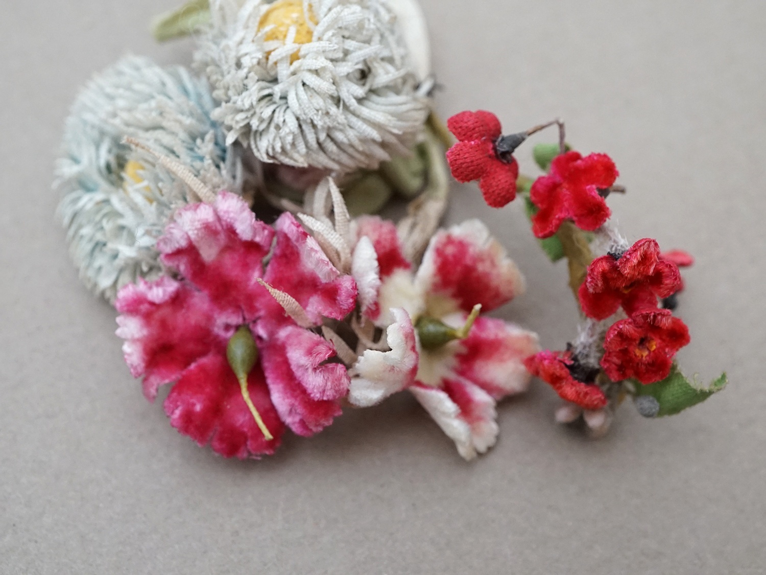 ベルベットの布花の小さなブーケです。