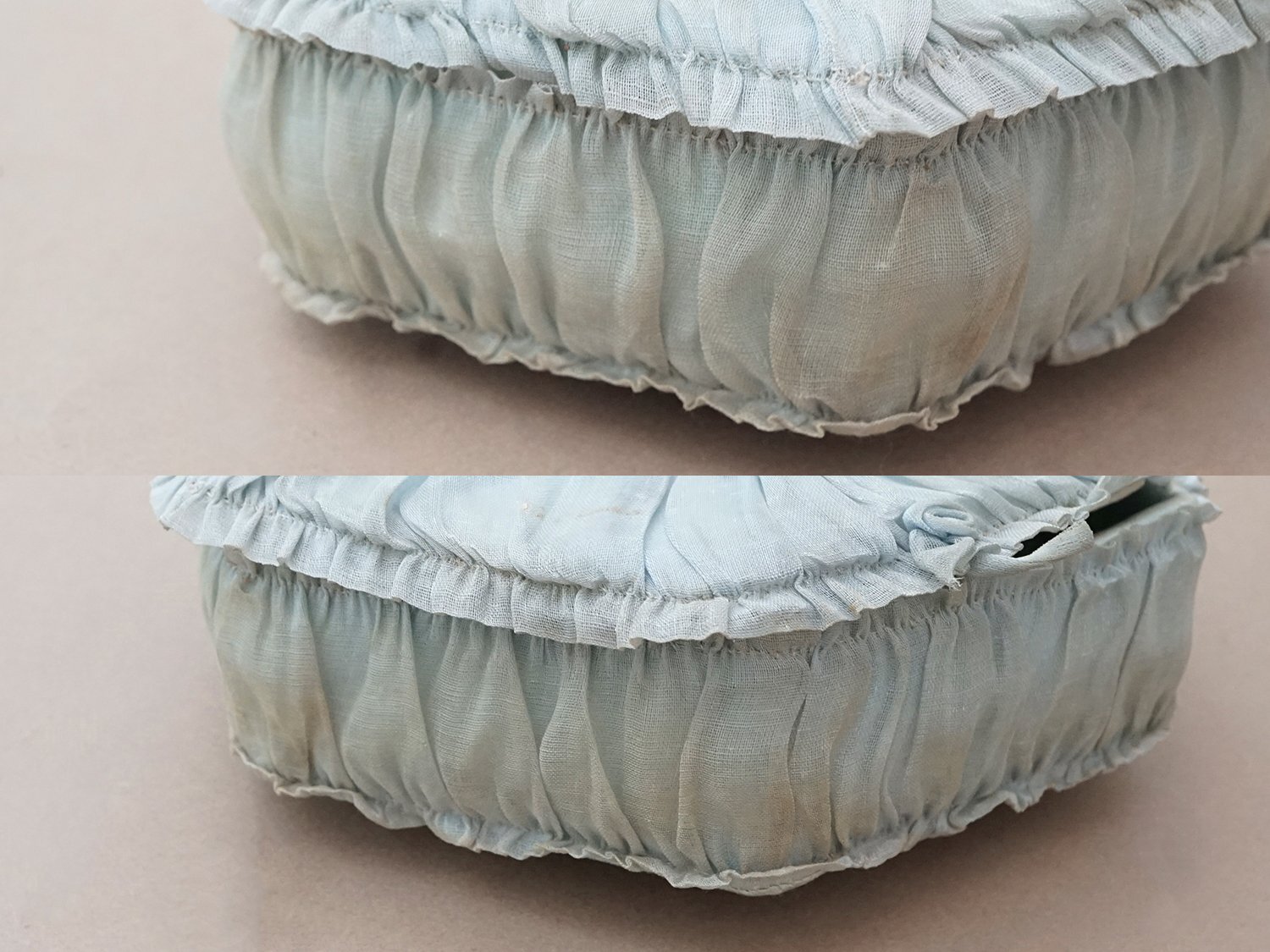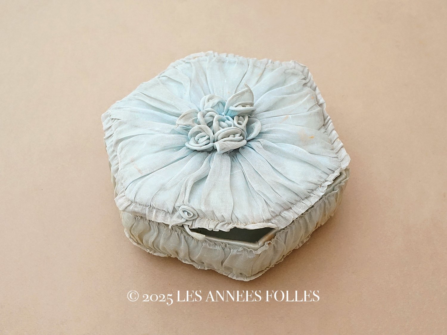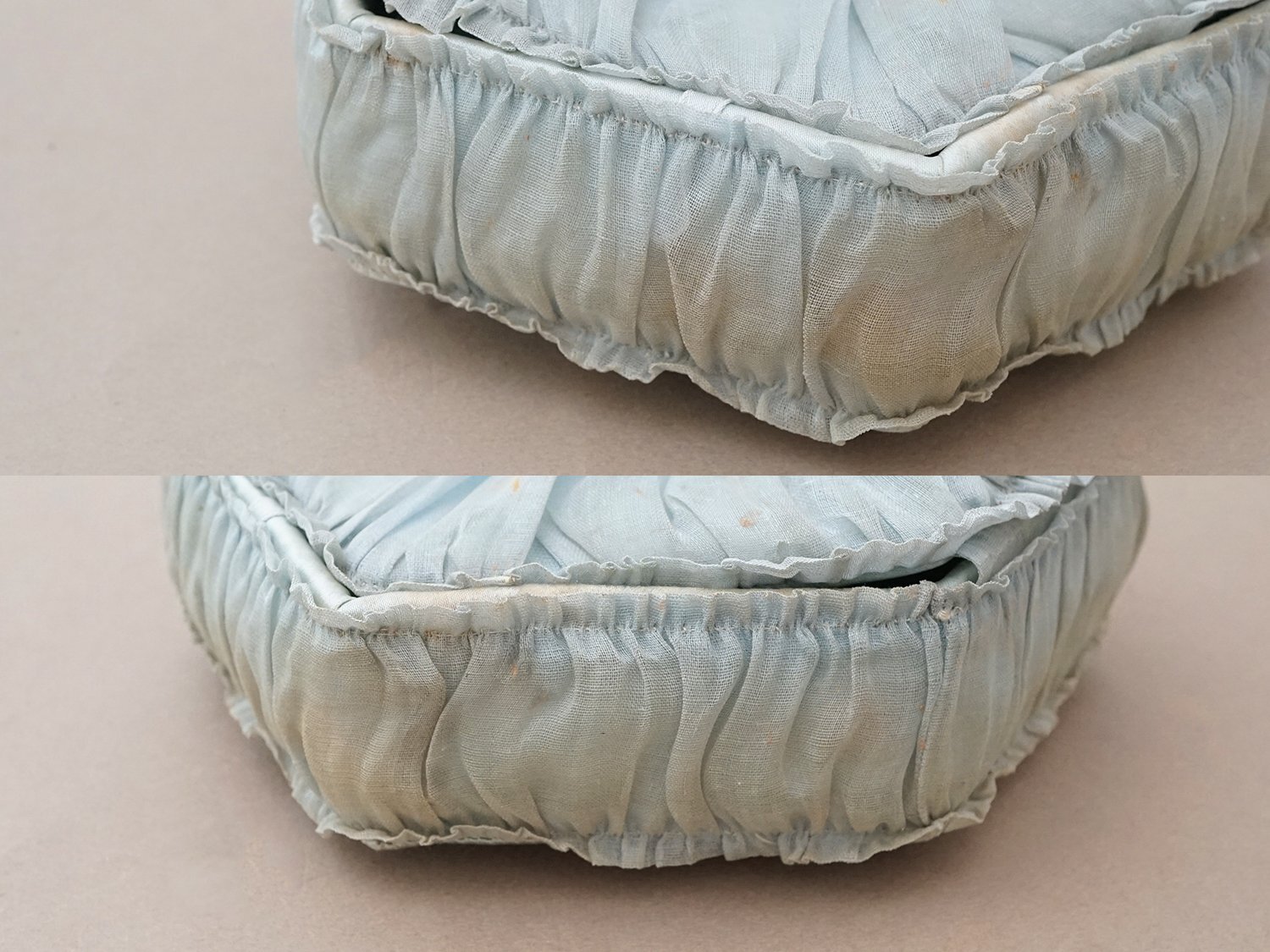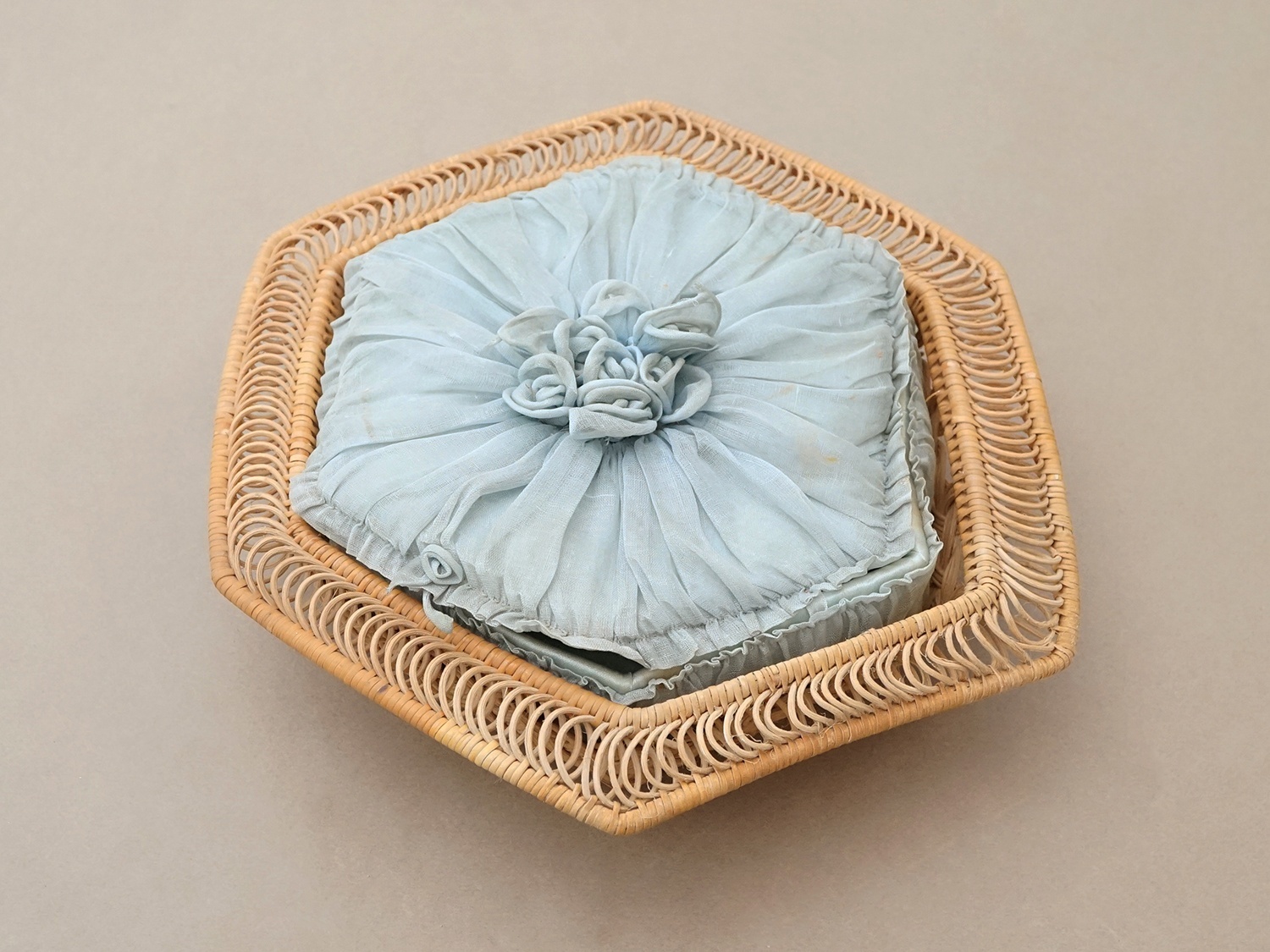 【クリスマスセール2025対象外】19世紀末 アンティーク パニエ付きボックス パウダーブルーのオーガンジー&シルクサテン [AB5047]