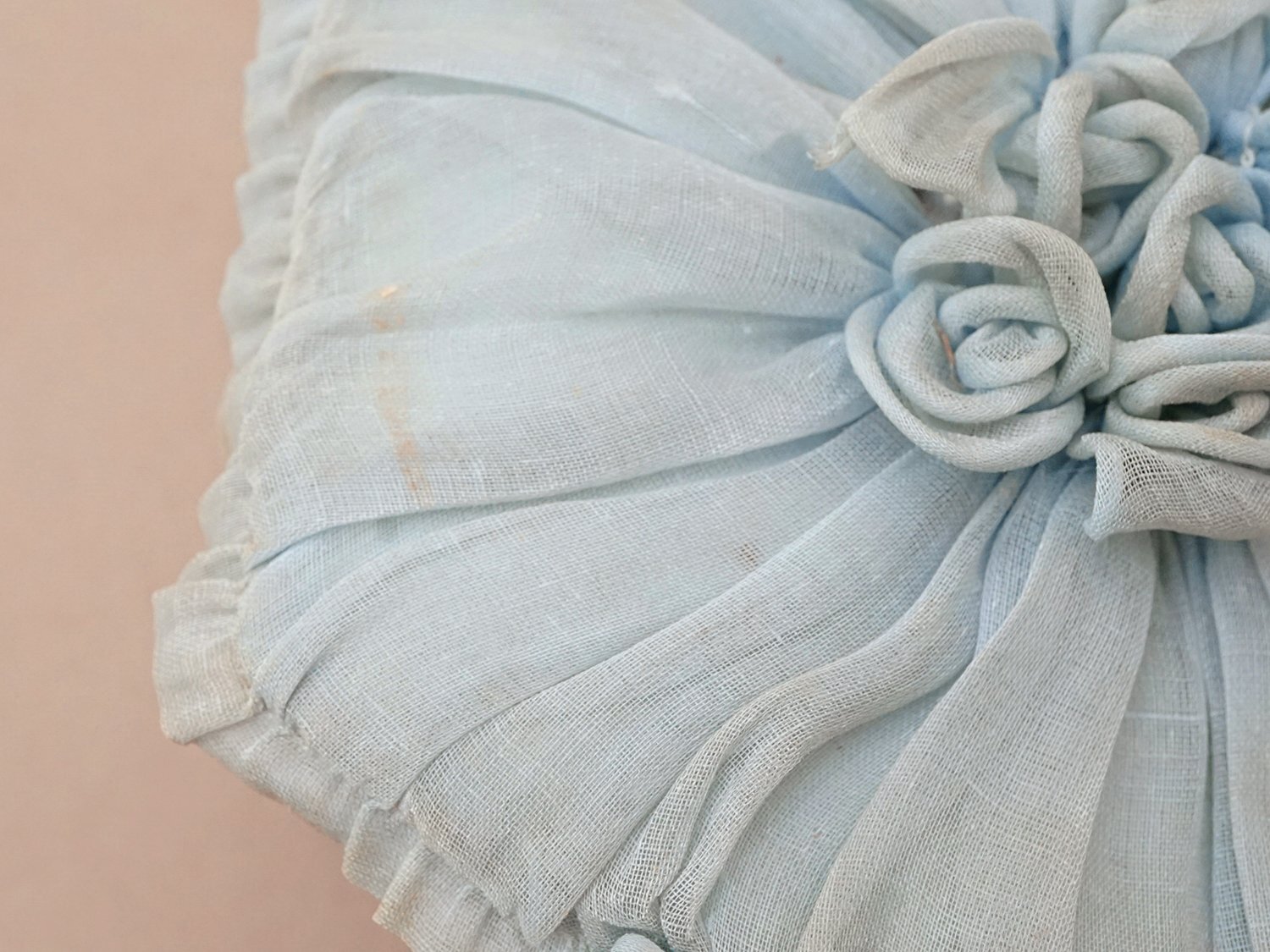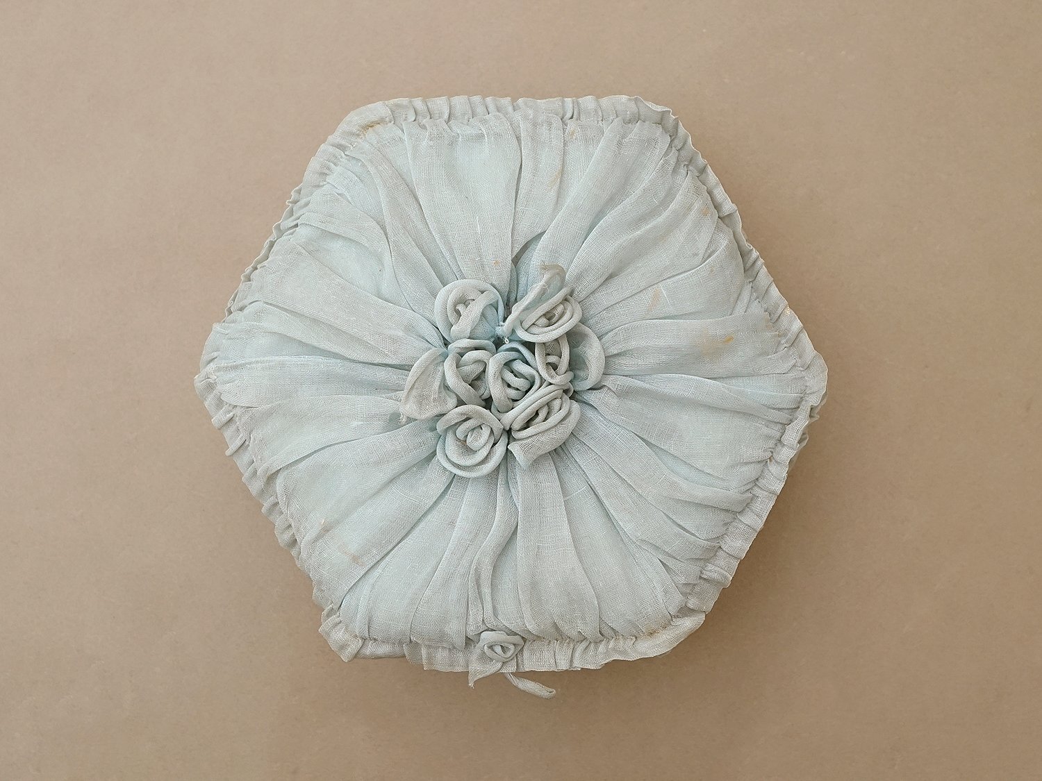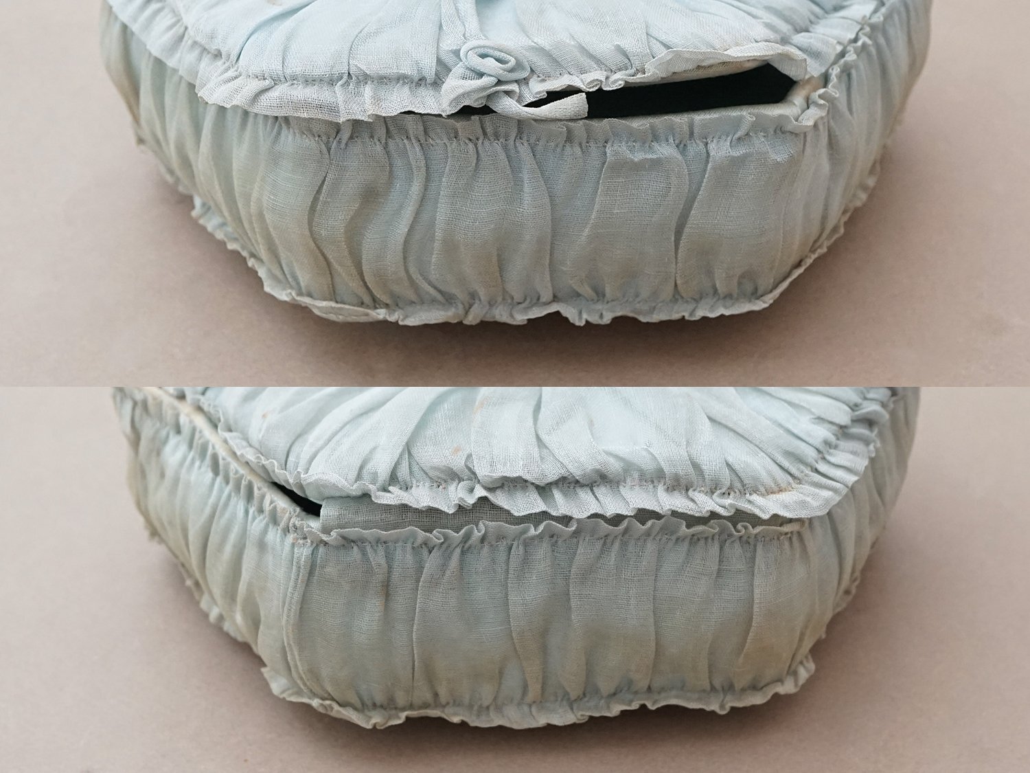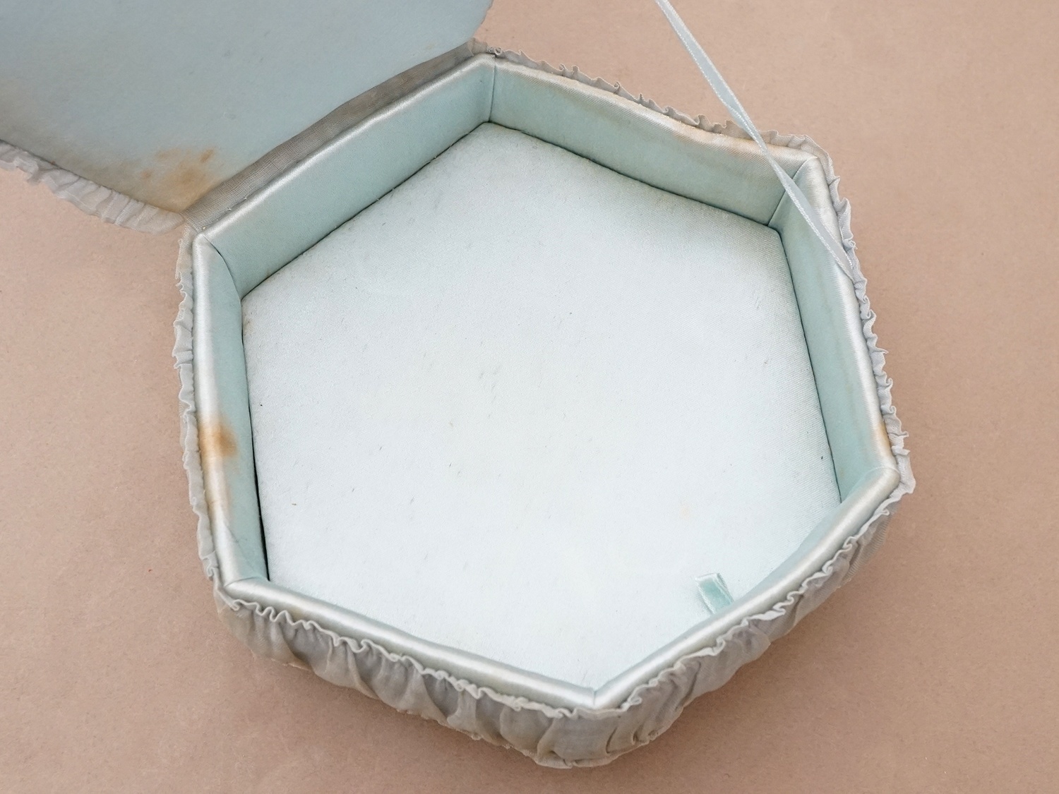 【クリスマスセール2025対象外】19世紀末 アンティーク パニエ付きボックス パウダーブルーのオーガンジー&シルクサテン [AB5047]