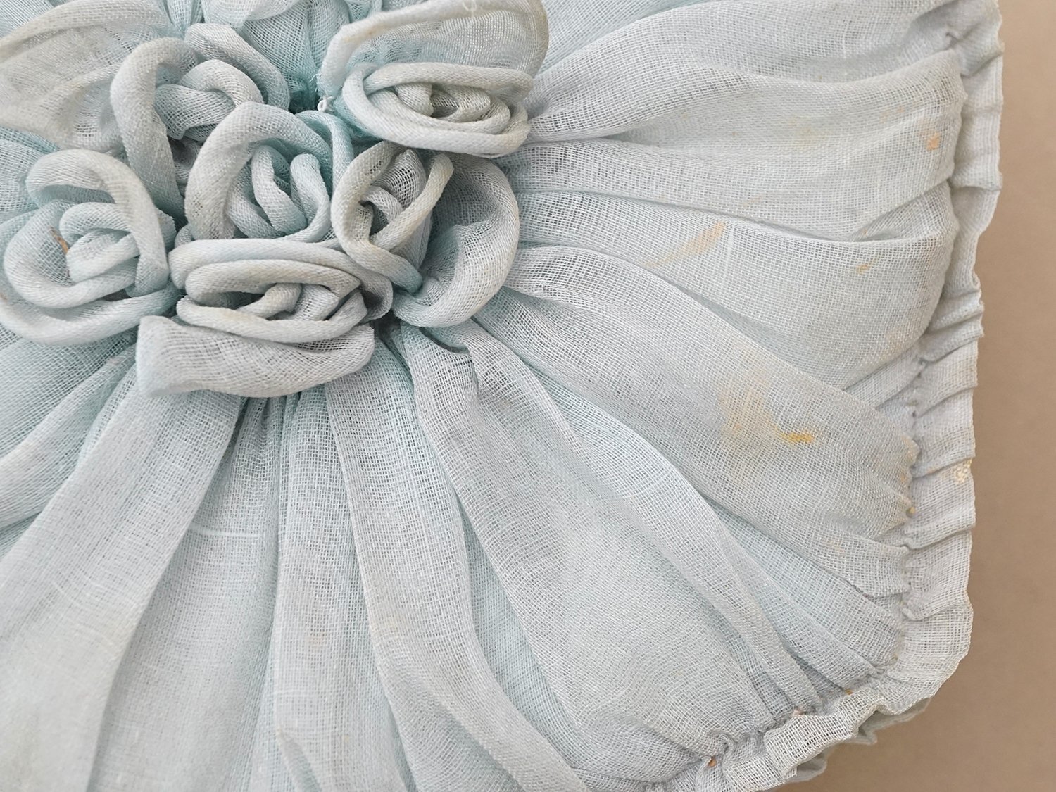 【クリスマスセール2025対象外】19世紀末 アンティーク パニエ付きボックス パウダーブルーのオーガンジー&シルクサテン