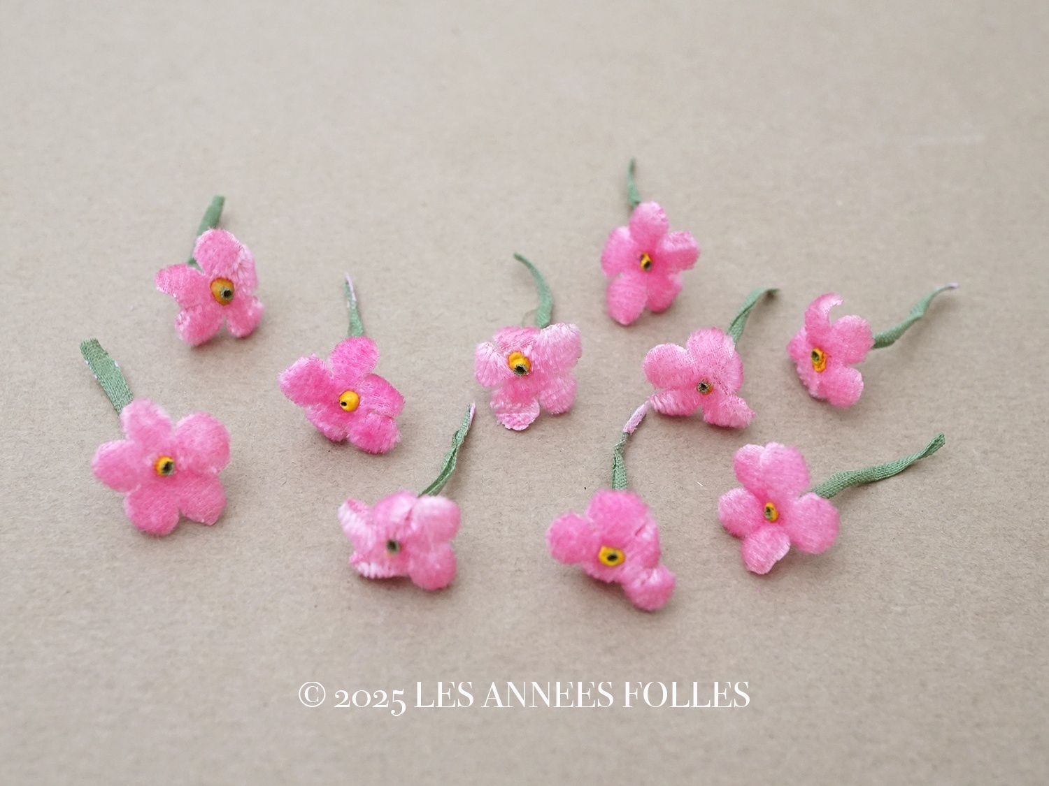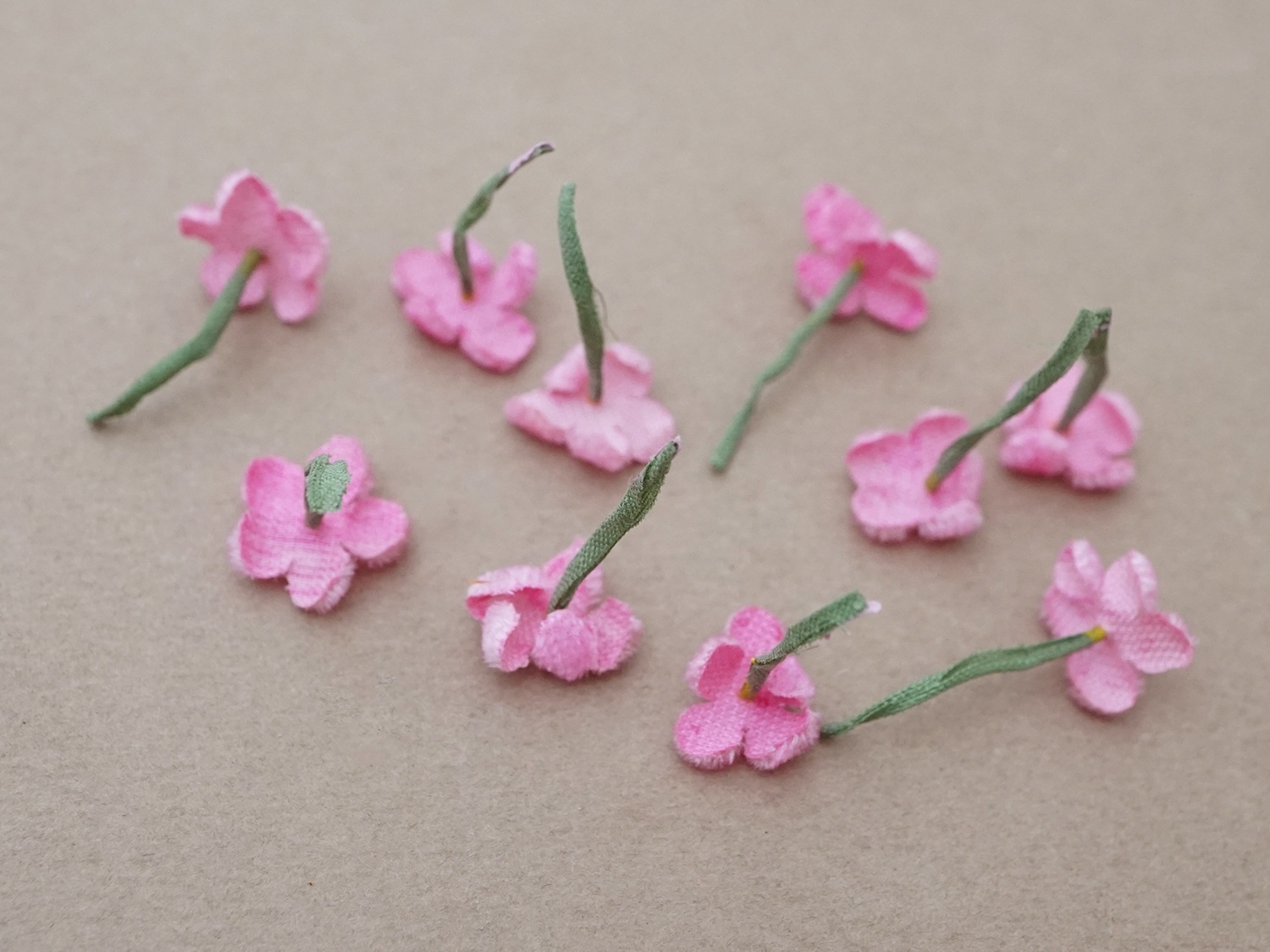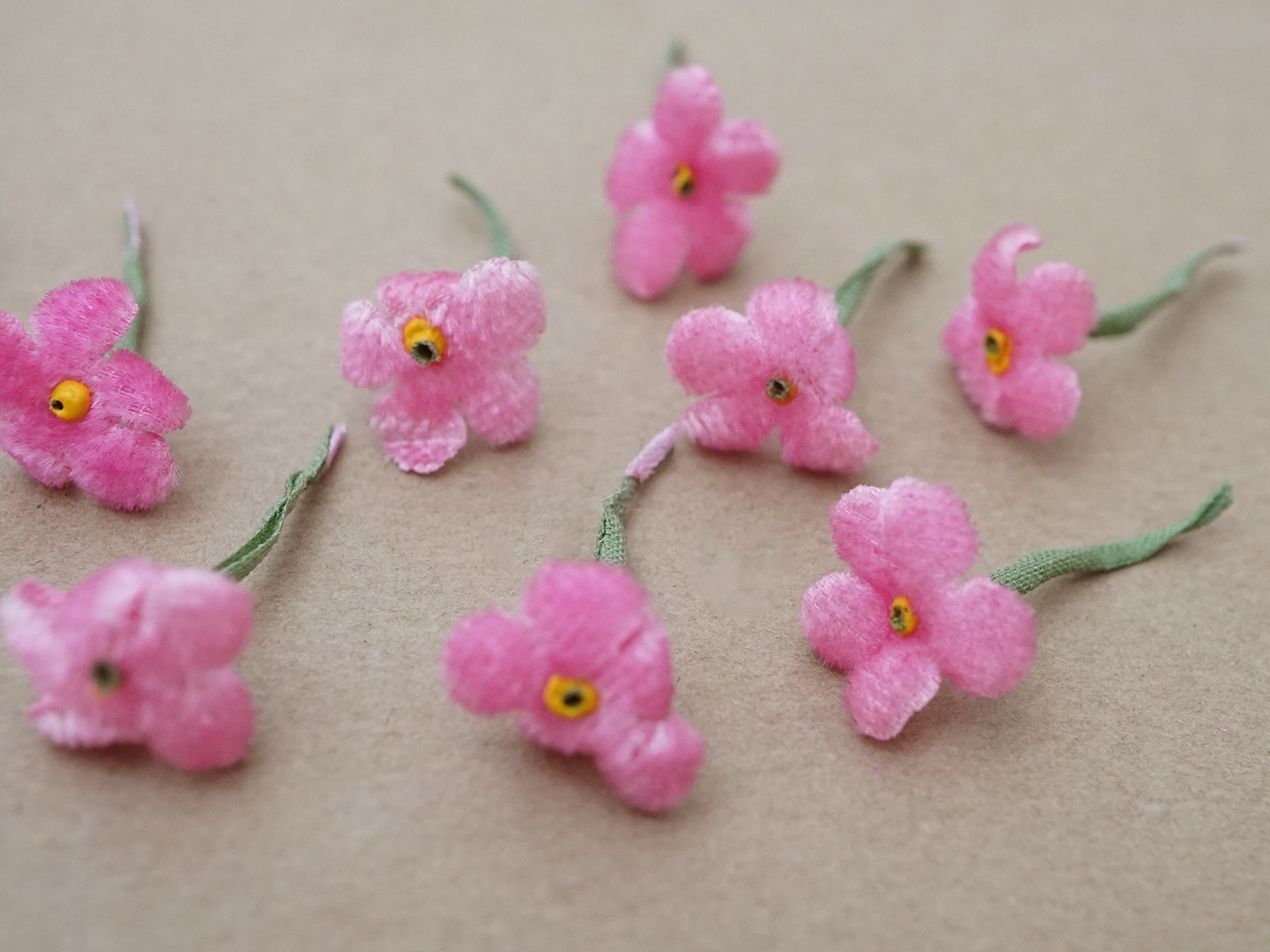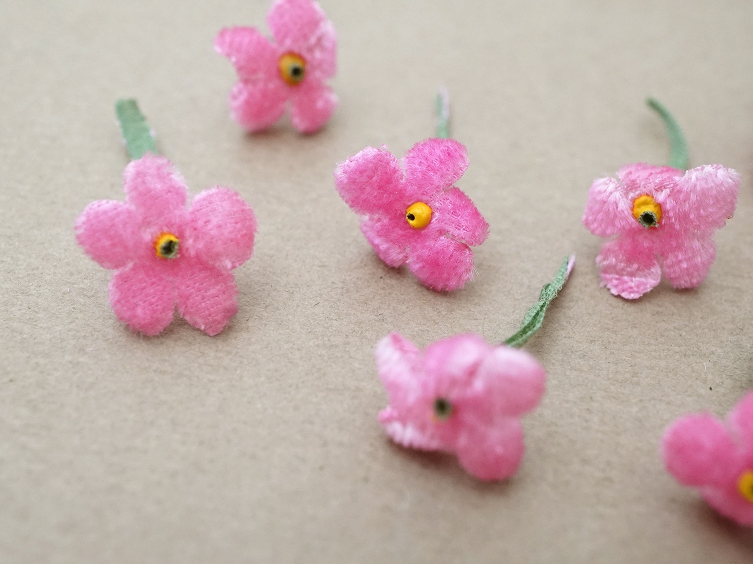 【クリスマスセール2025対象外】アンティーク 勿忘草 ベルベットの布花 ピンク 9〜10ピースのセット 15mm