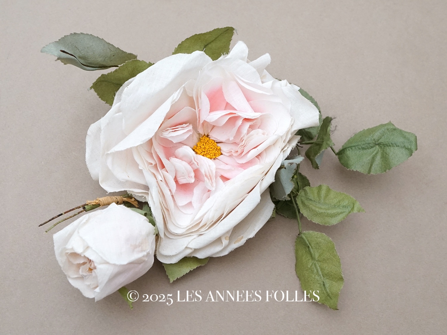 【クリスマスセール2025対象外】1900年頃 アンティーク薔薇の大きな布花 パウダーピンク