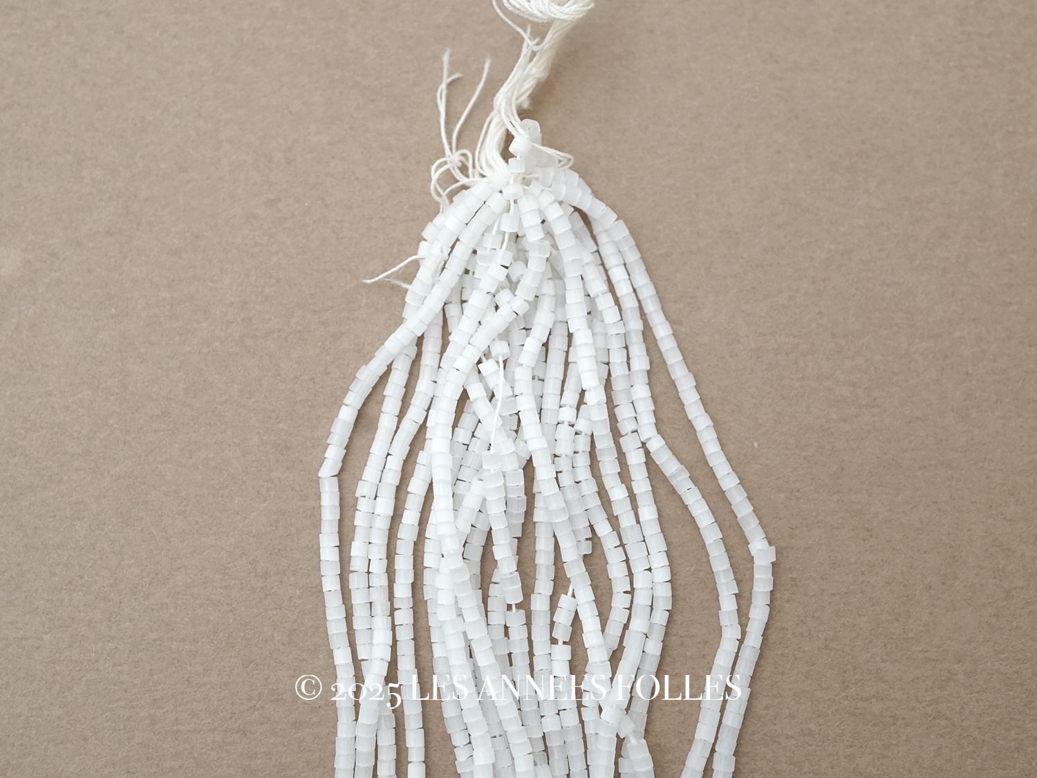 アンティーク ガラス製 サティネビーズ ホワイト 1cm=8粒 17〜19g [AM15974]