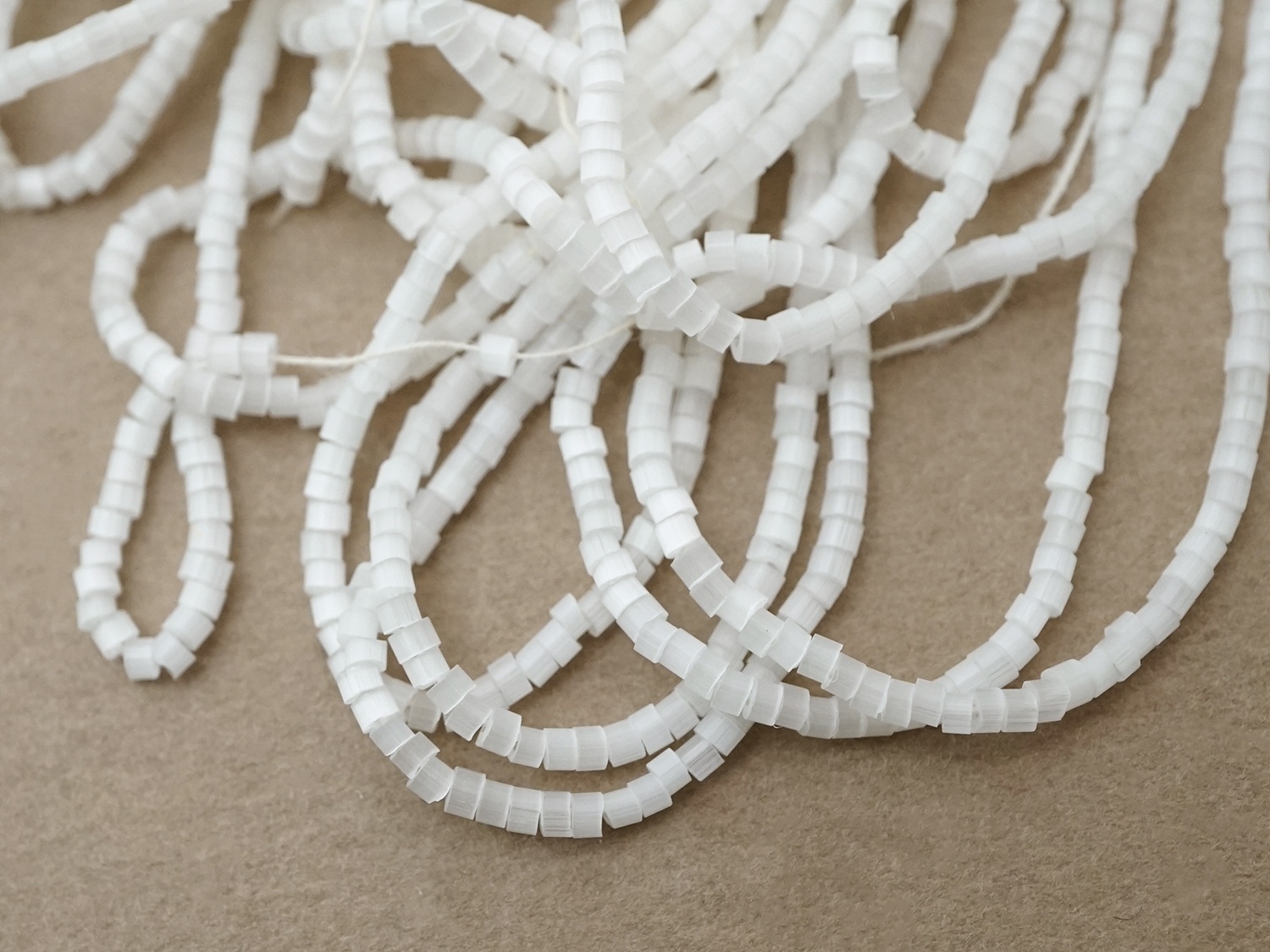 ガラス製でオフホワイトのサティネビーズ27〜28gです。