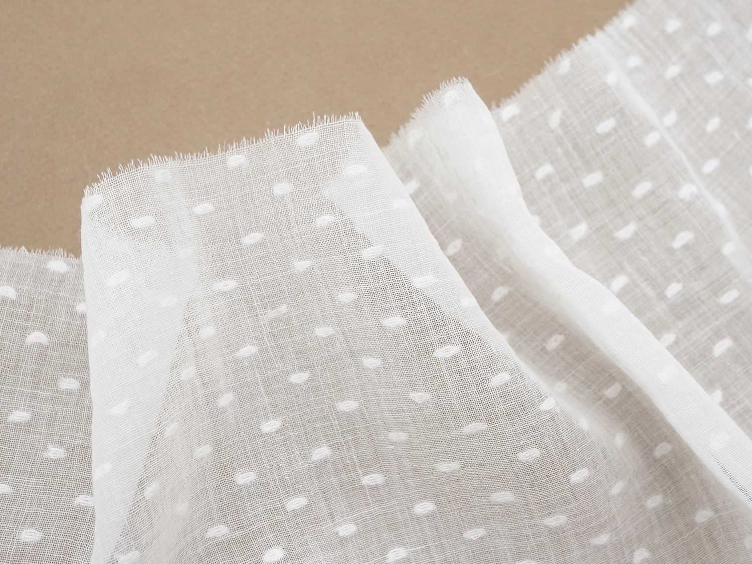 アンティーク ドット刺繍入り コットンオーガンジー オフホワイト ファブリック 83×77cm