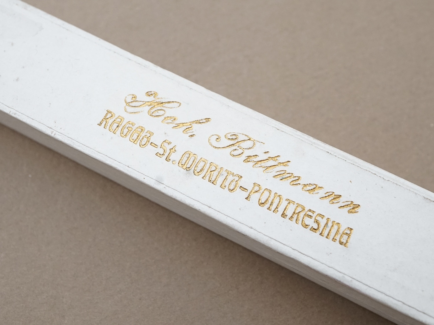 オフホワイトにゴールドの文字が映える、
