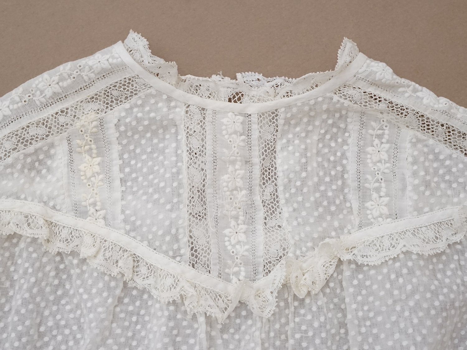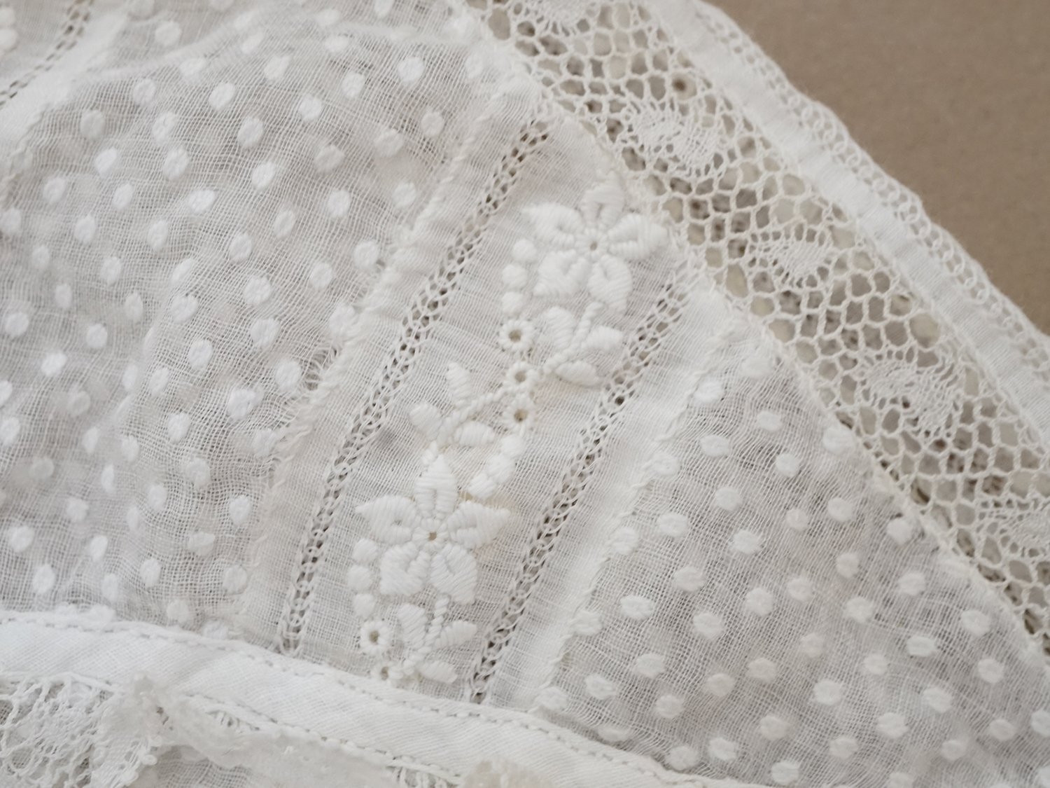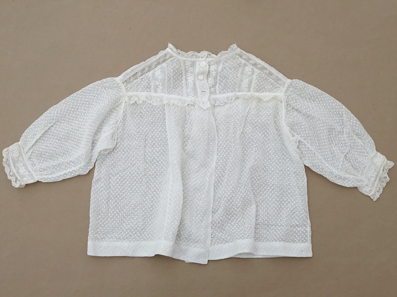 1900年頃 アンティーク ベビー用 ブラウスドット刺繍のコットンファブリック