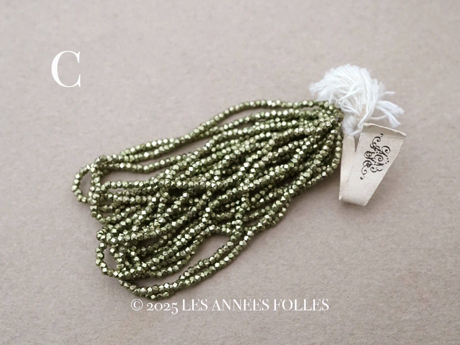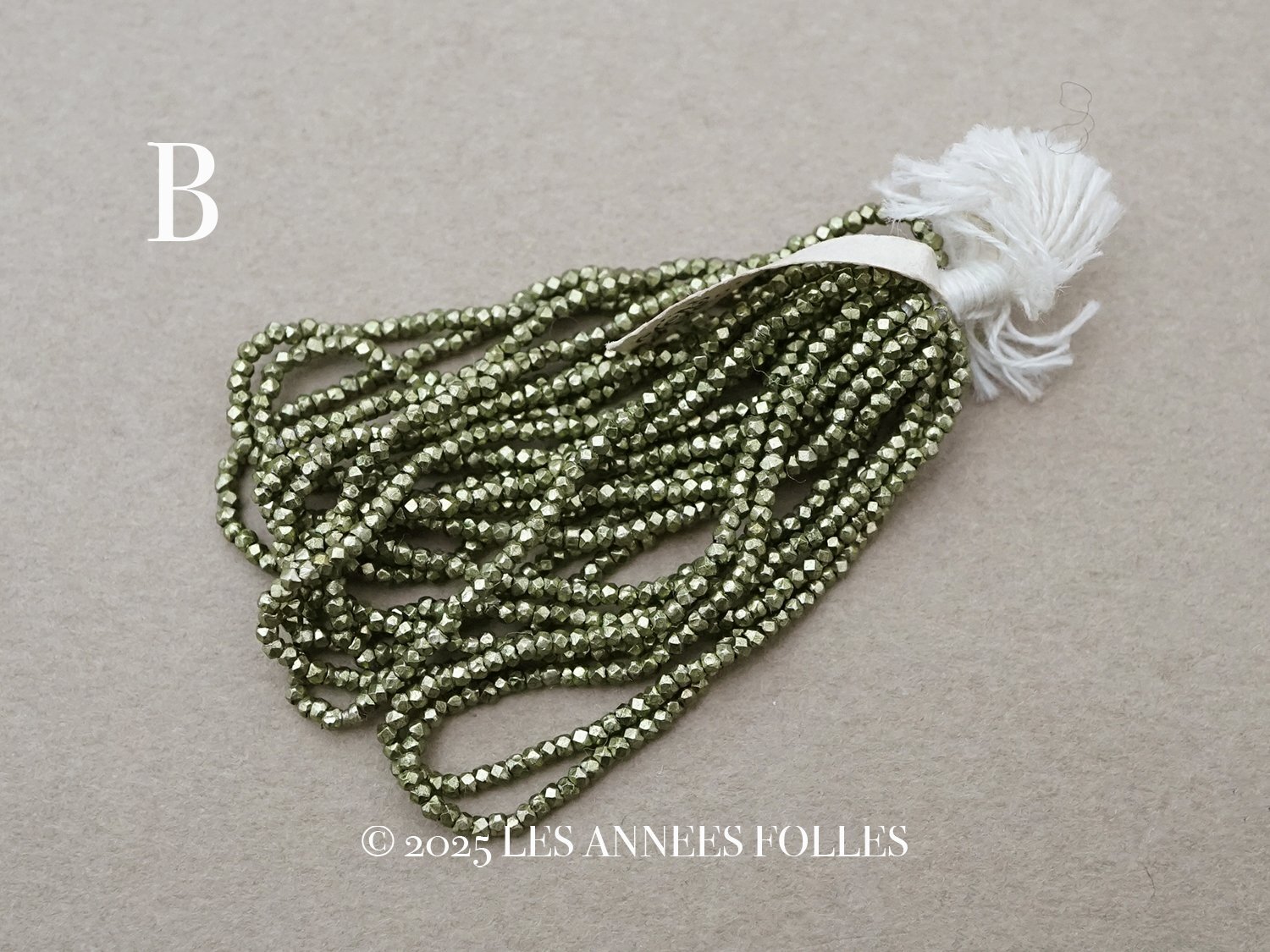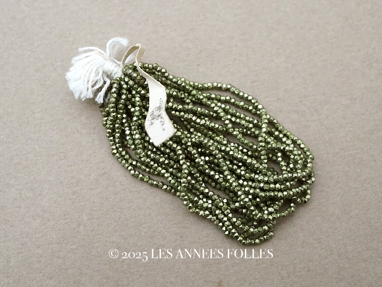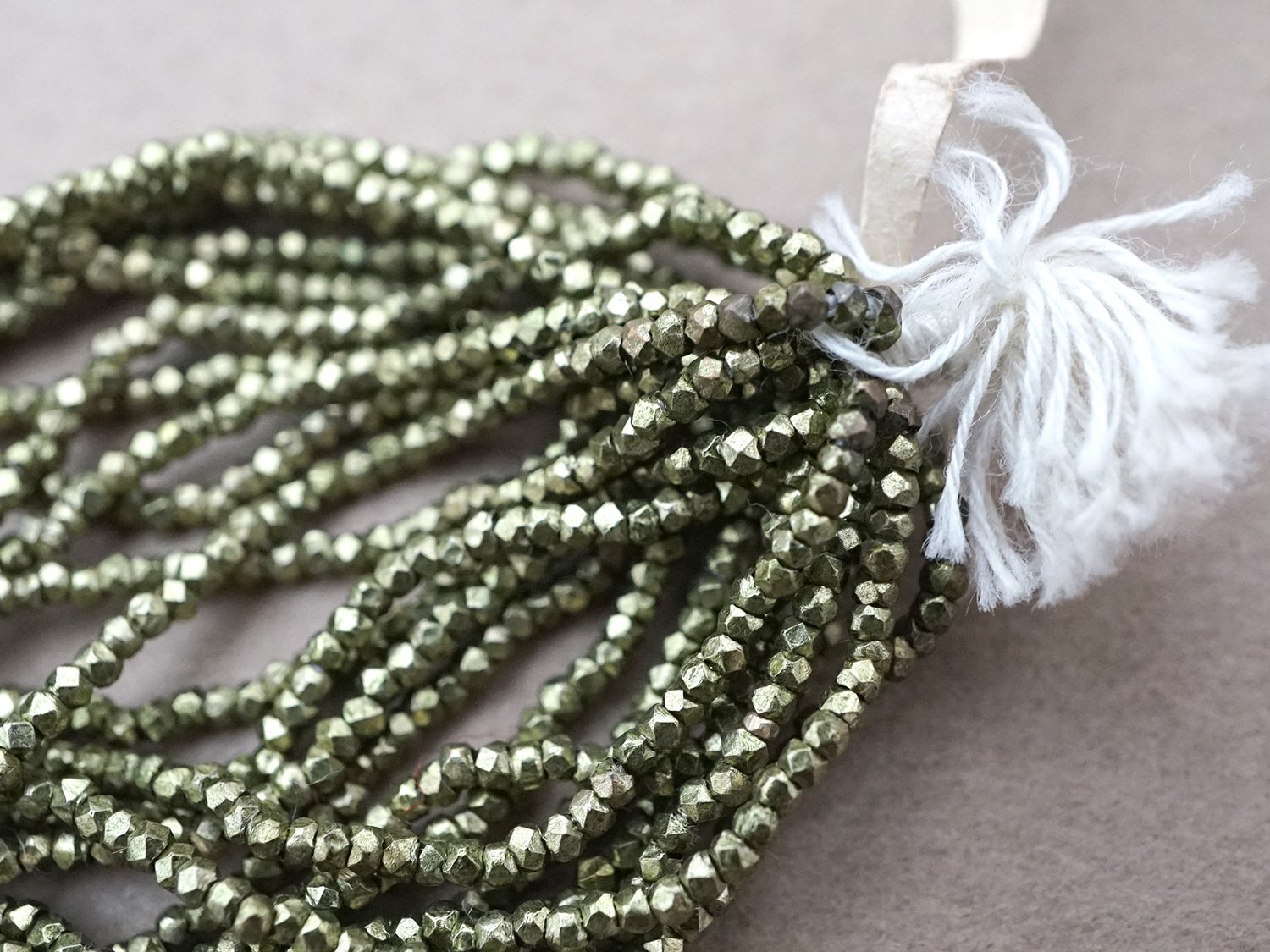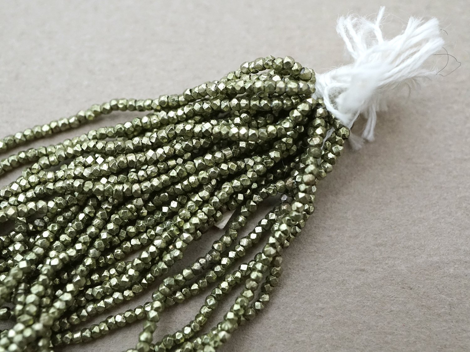 メタル製でカット入りの枯れ草色のビーズです。