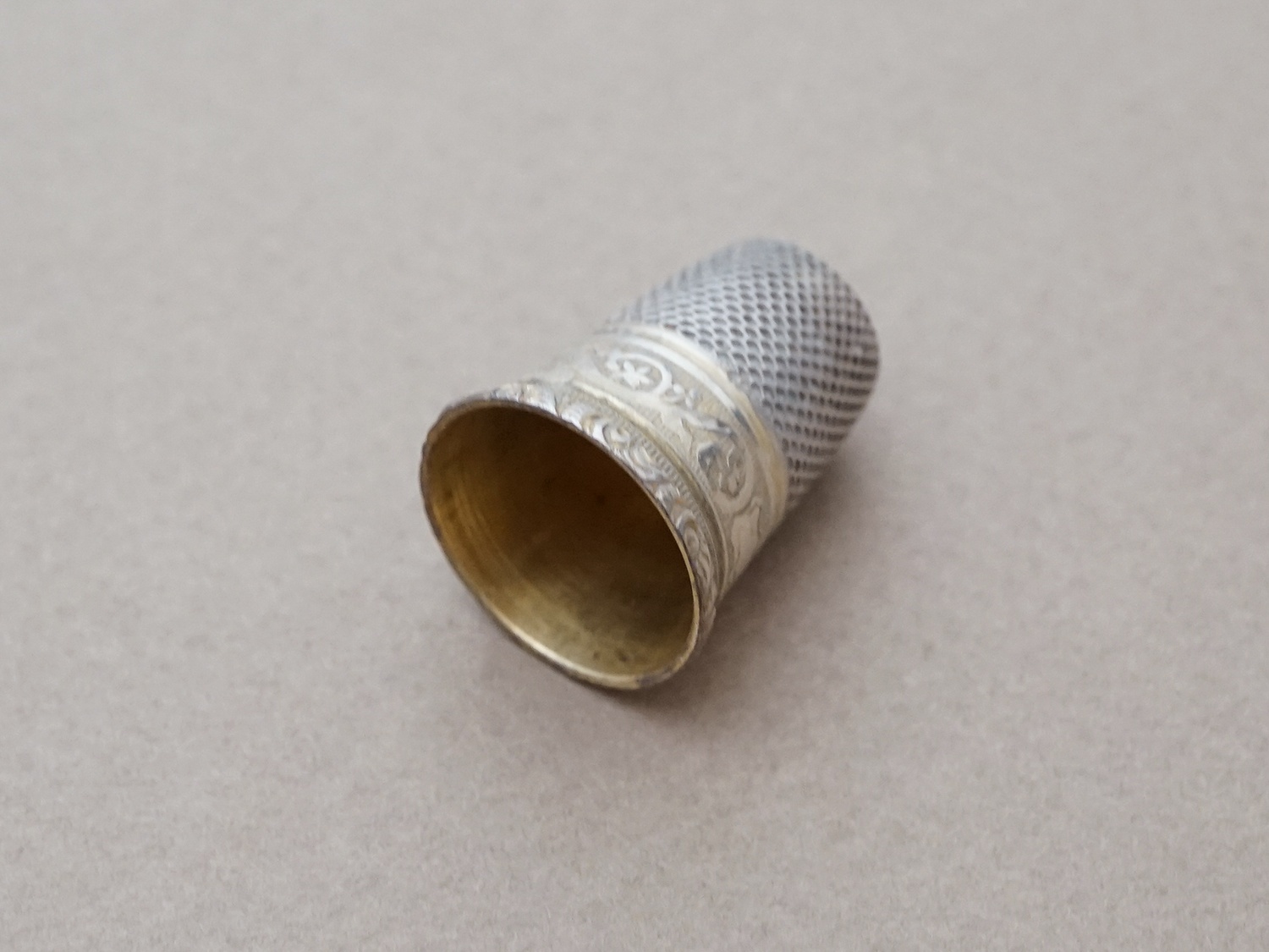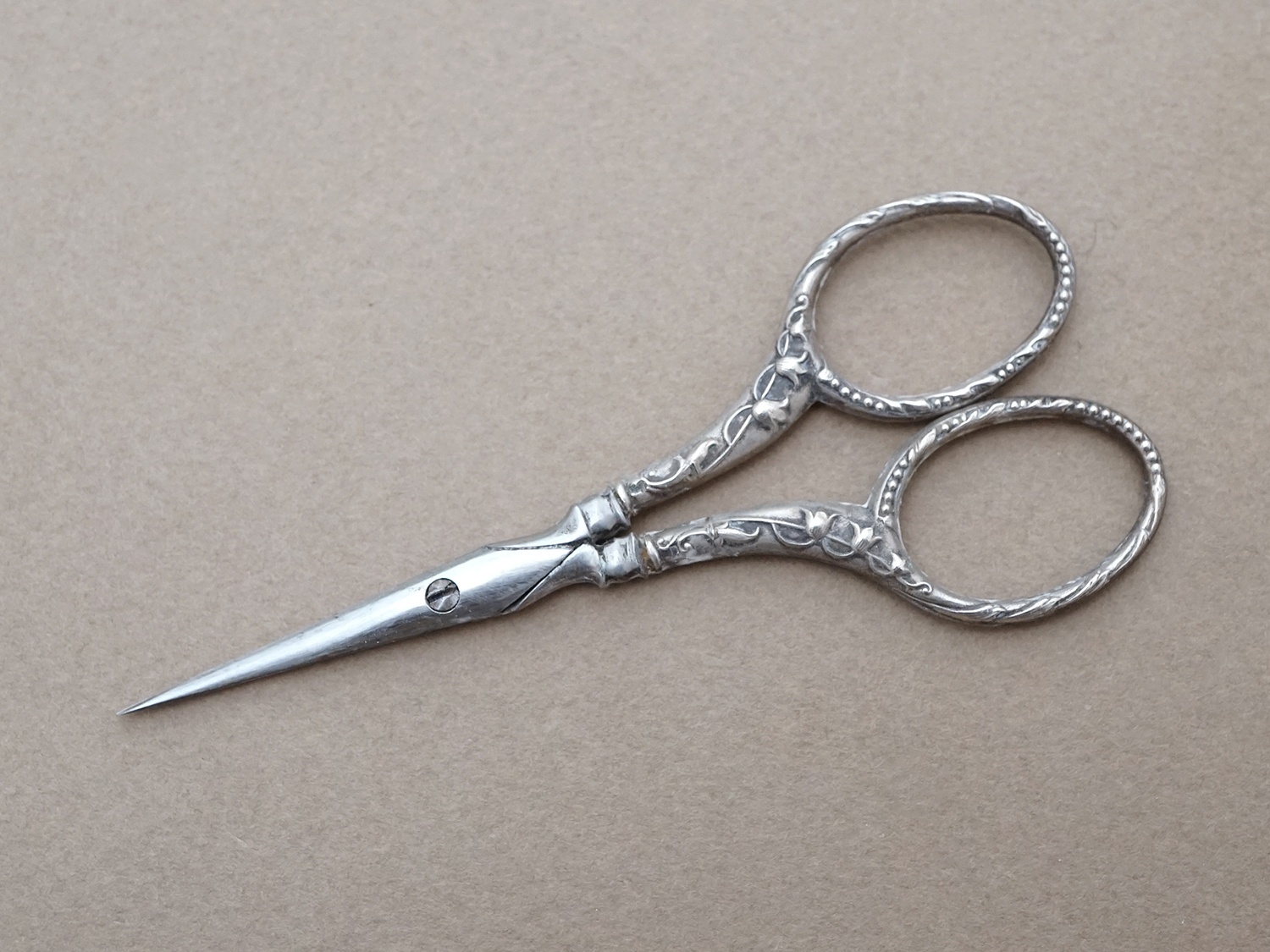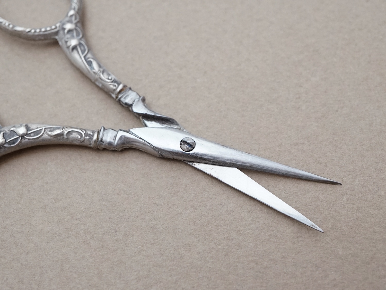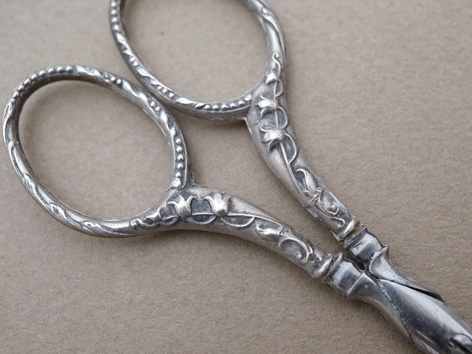 鈴蘭の絵柄入りシルバー製の裁縫道具です。