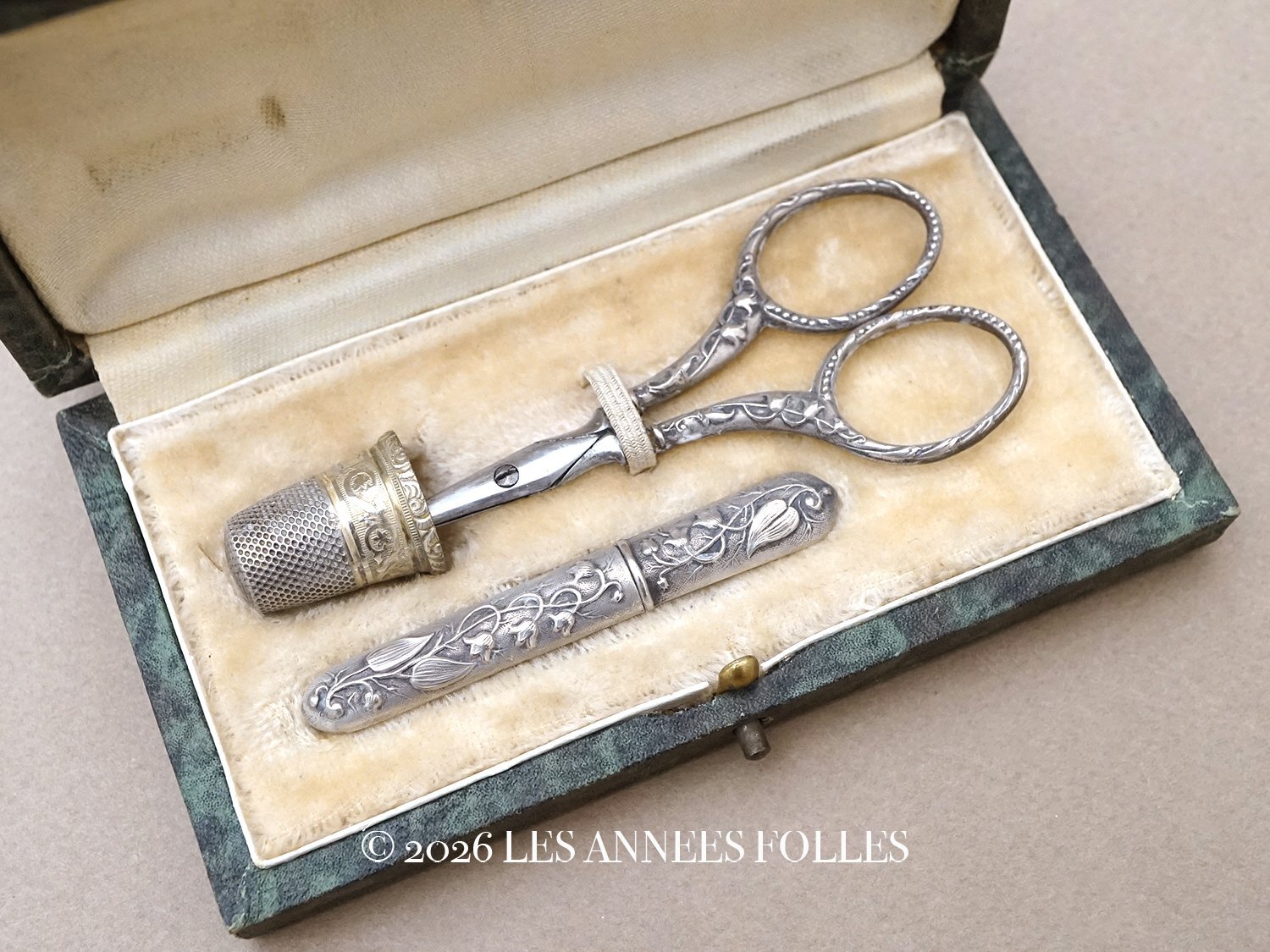 アンティーク シルバー製 鈴蘭の裁縫道具セット [AM16019]
