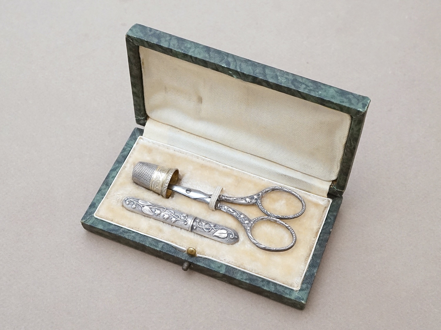 アンティーク シルバー製 鈴蘭の裁縫道具セット