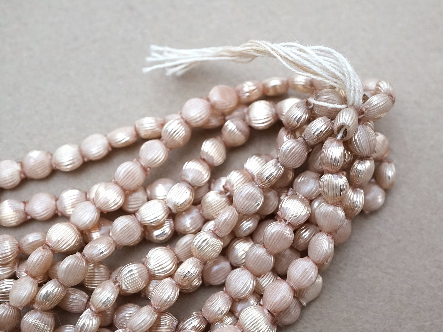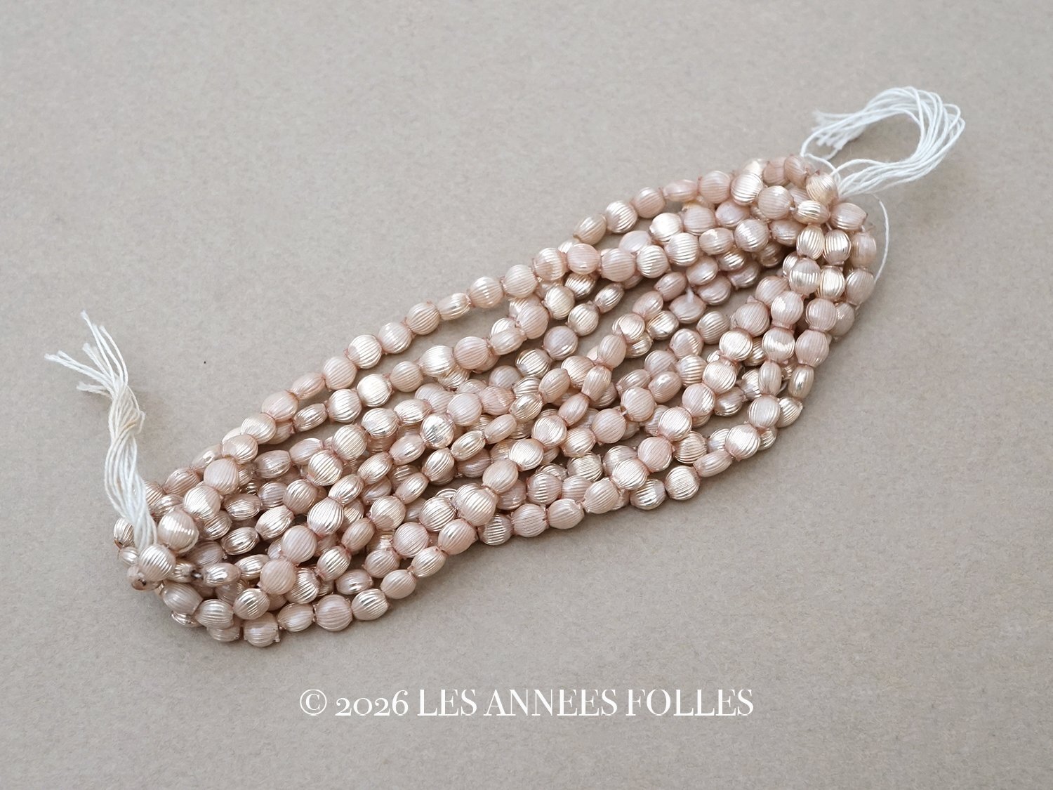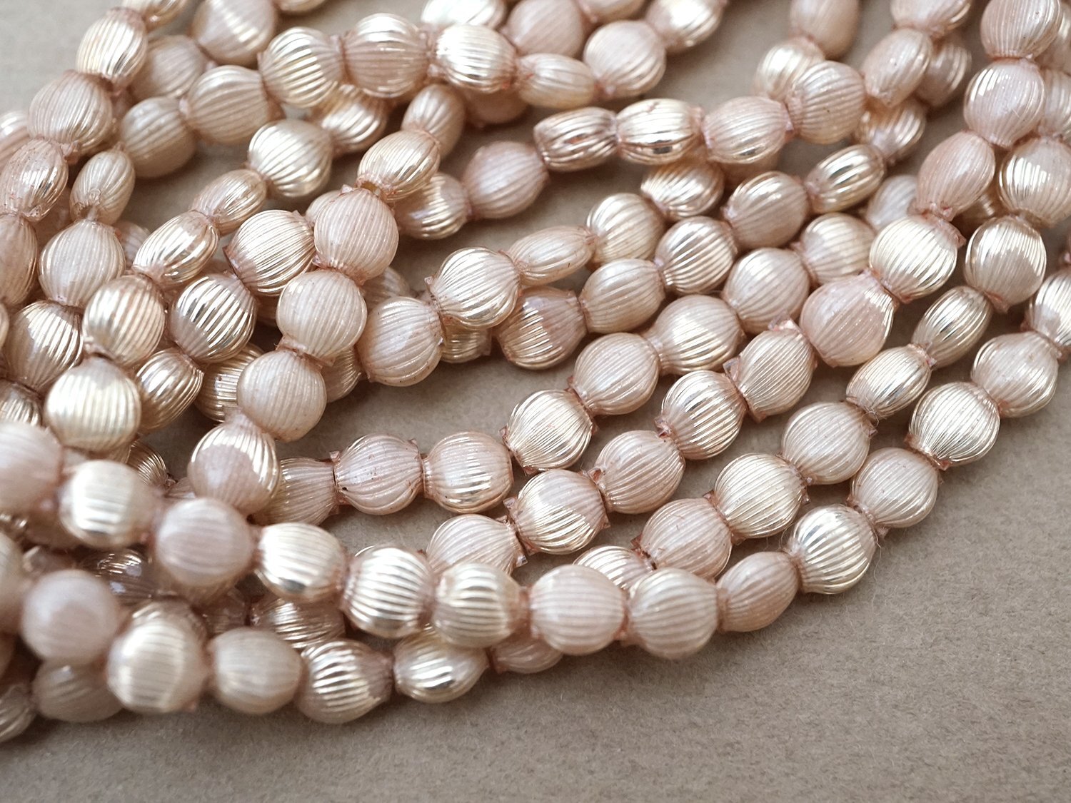 細かなライン入りでパウダーピンクのスフレビーズ約280ピースです。