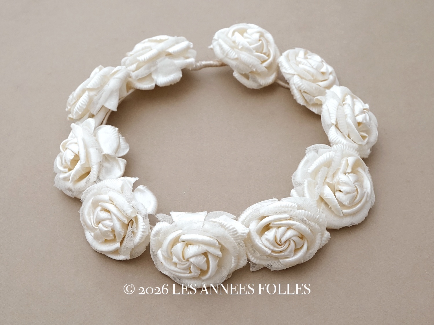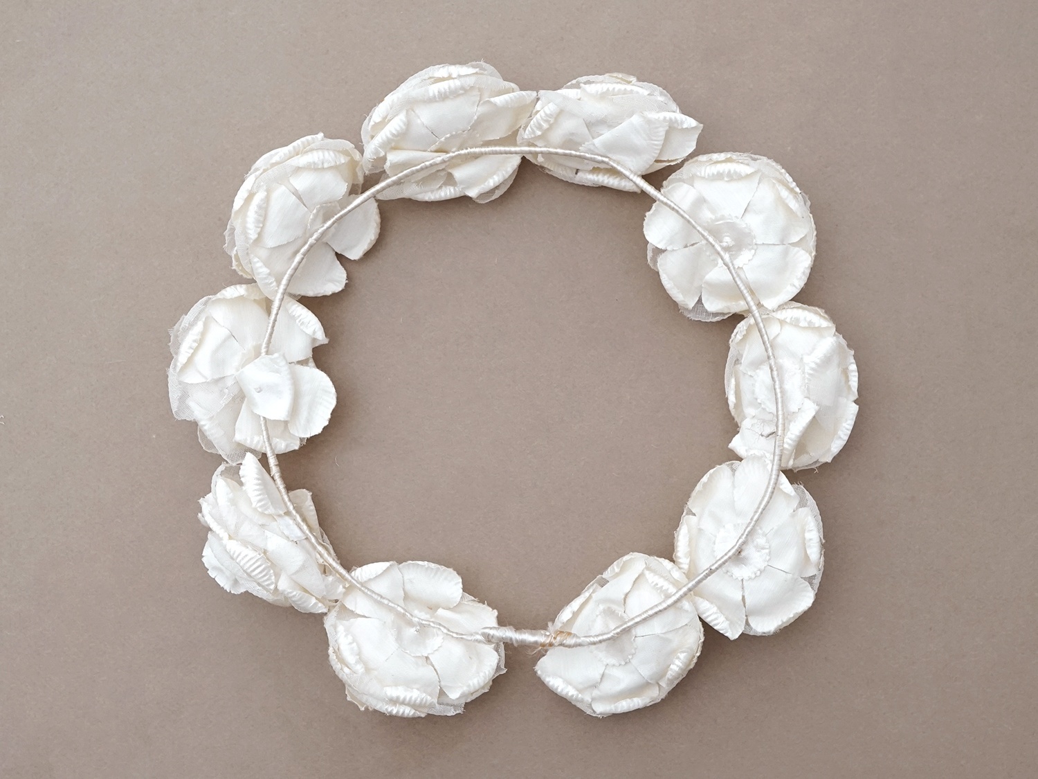 アンティーク シルクサテン 薔薇の布花のティアラ 花冠 オフホワイト