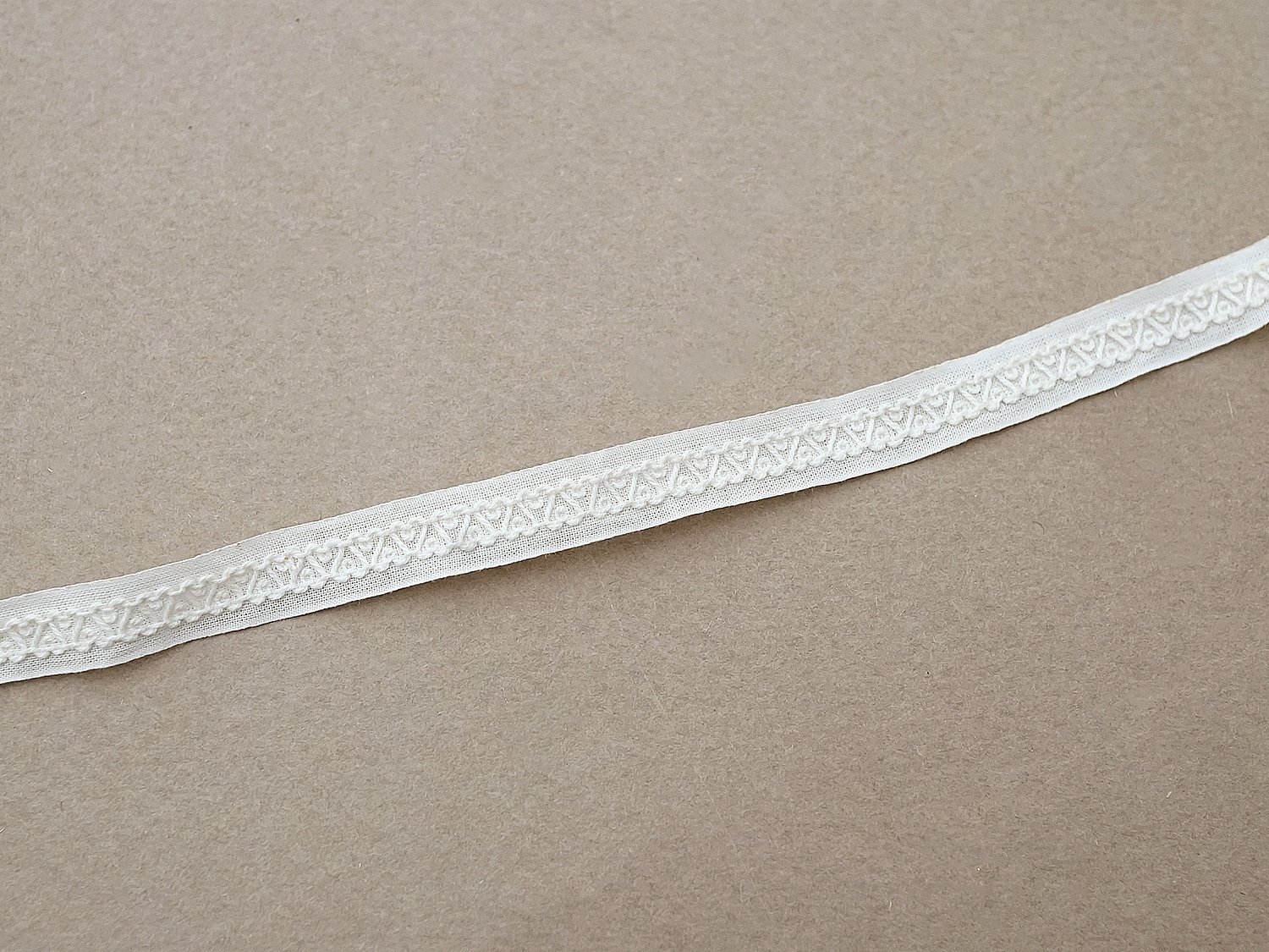 アンティーク ハートの刺繍入り トリム オフホワイト 1.43m 7mm幅 [AM16032]