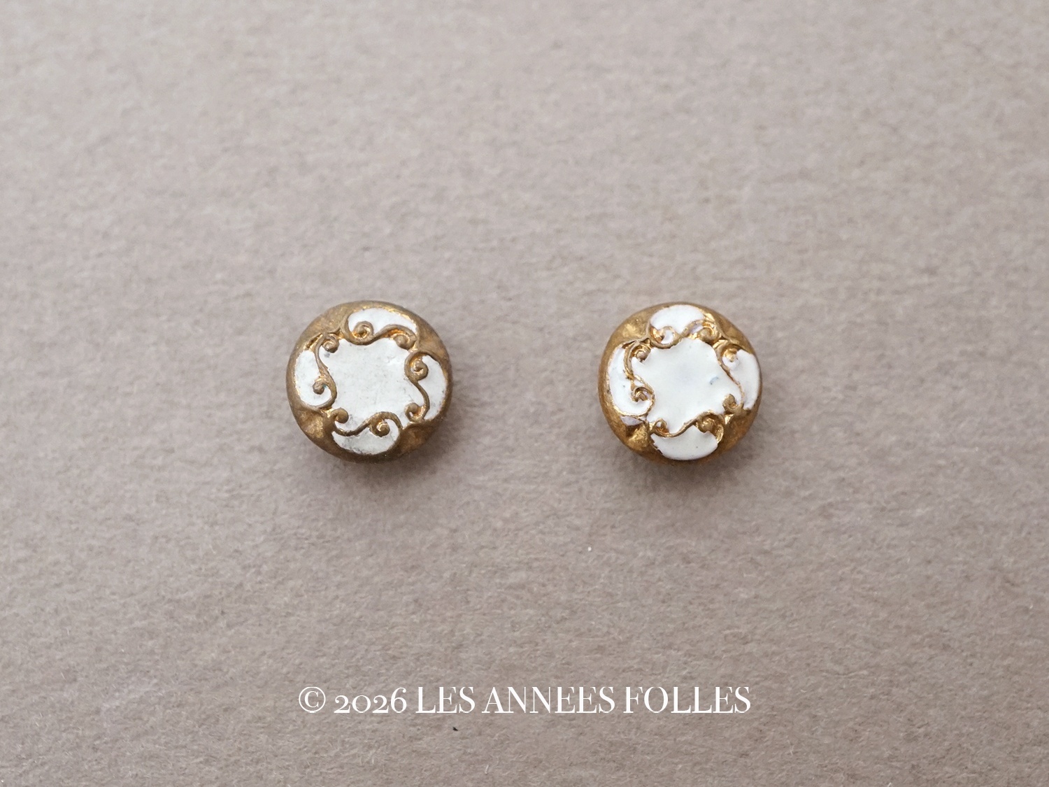 アンティーク 極小 エナメル ボタン オフホワイト&ゴールド 8mm ドール用 ピース売り