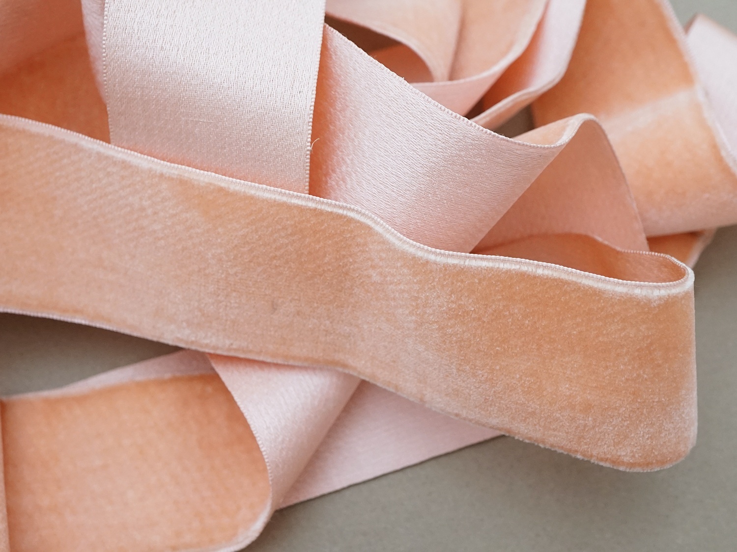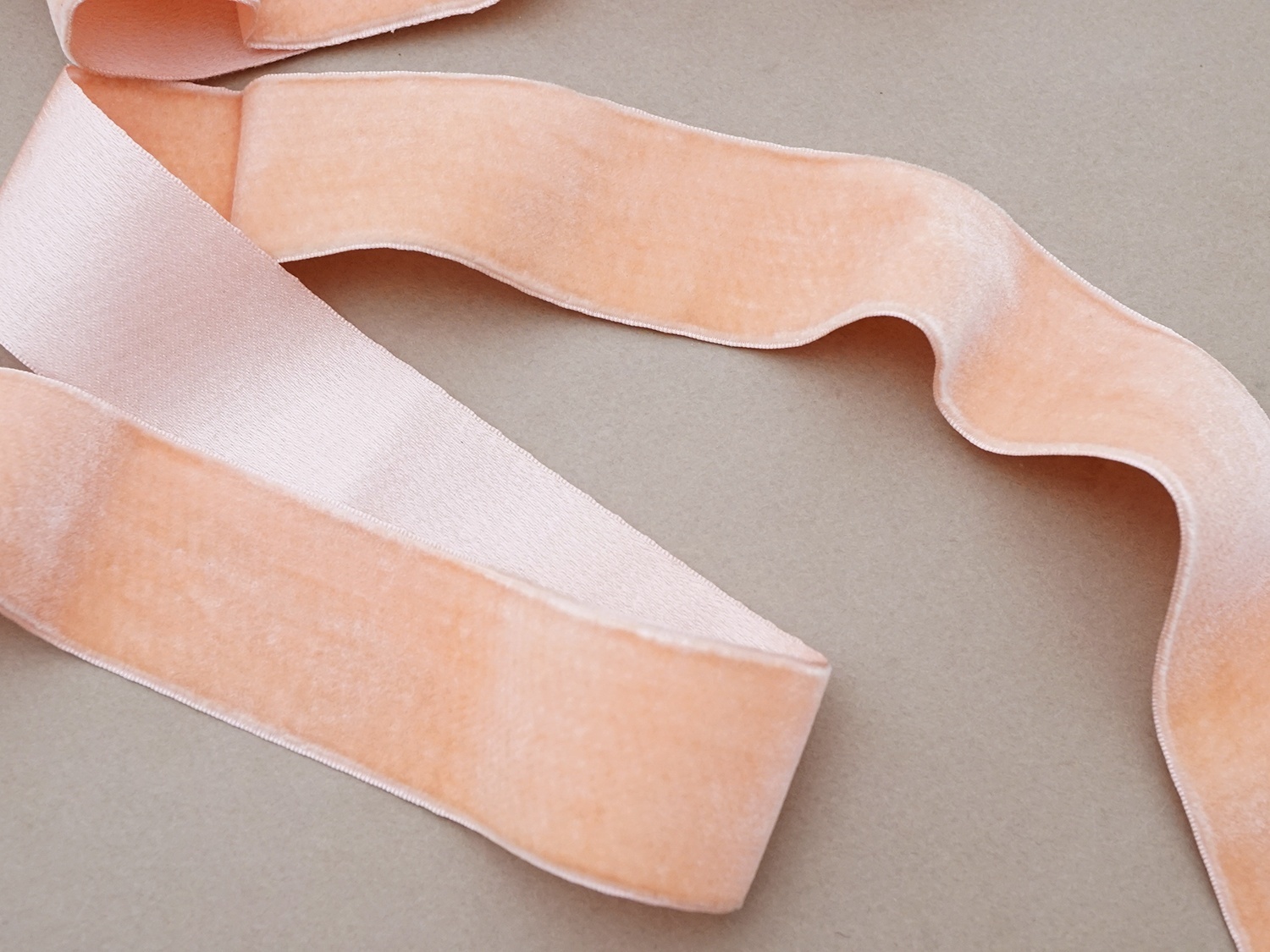 サーモンピンクの幅広ベルベットリボンです。