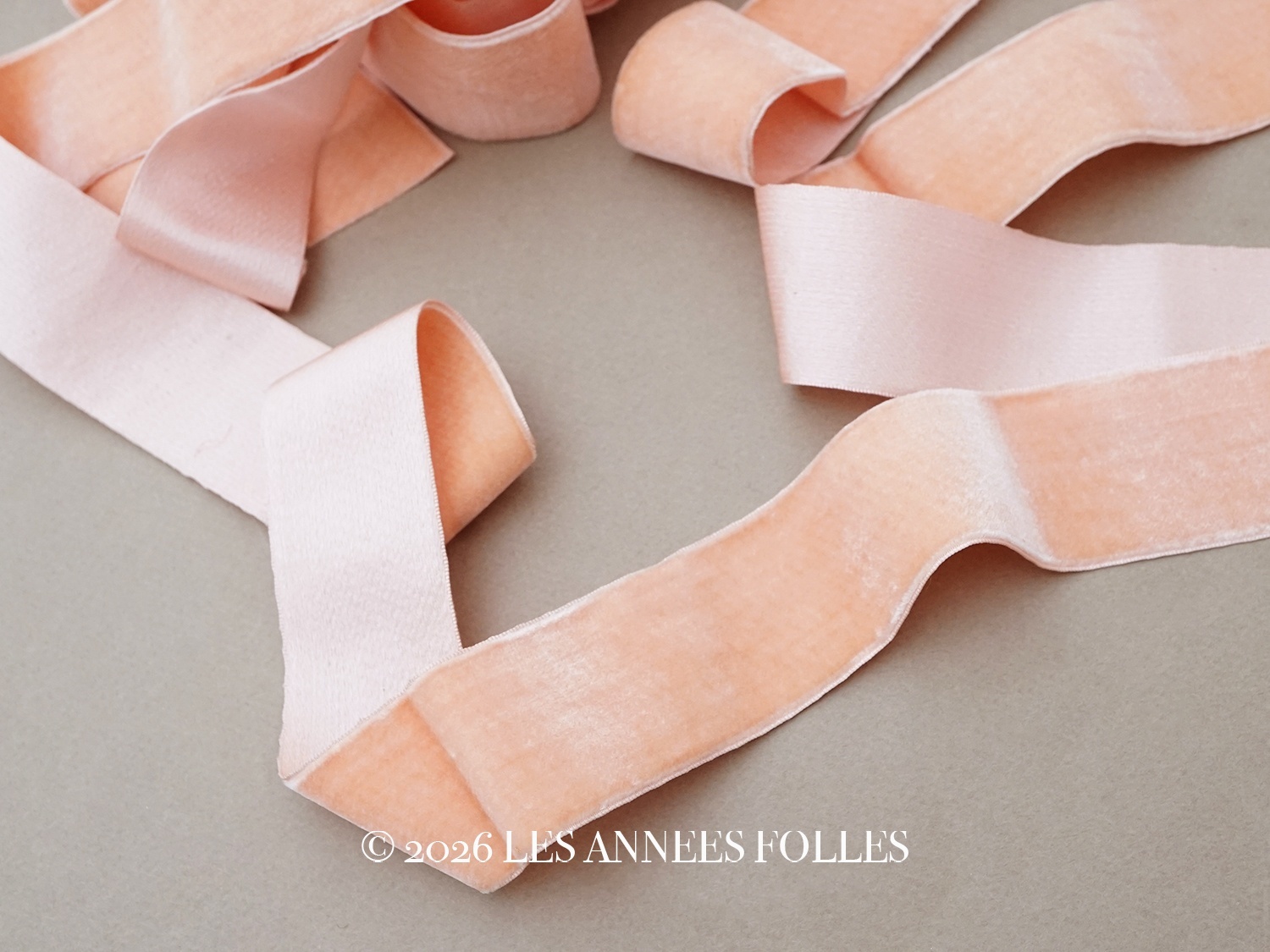 アンティーク シルク&コットン製 幅広 ベルベットリボン サーモンピンク ダブルフェイス PON 787 N 9 COL 602