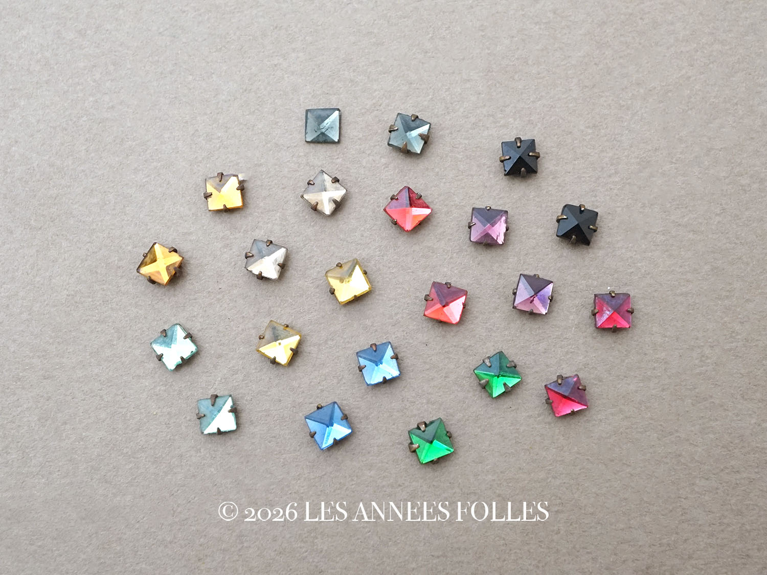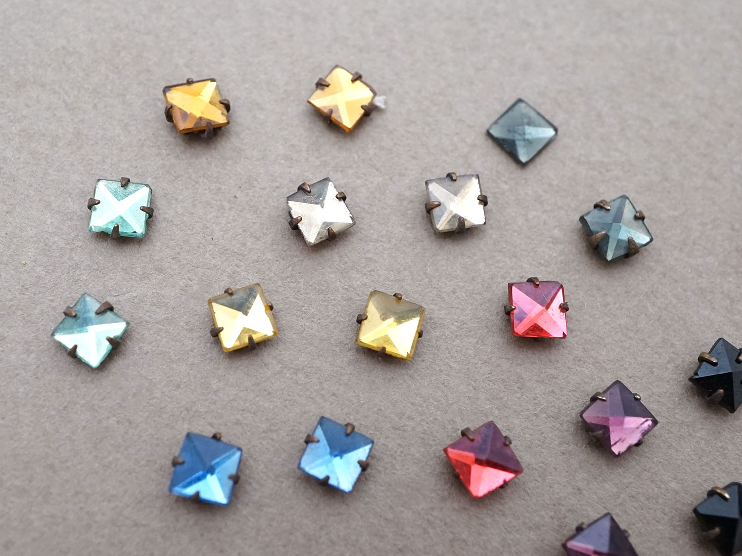 19世紀 アンティーク グラスストーン スクエア 5mm 22ピースのセット ラインストーン