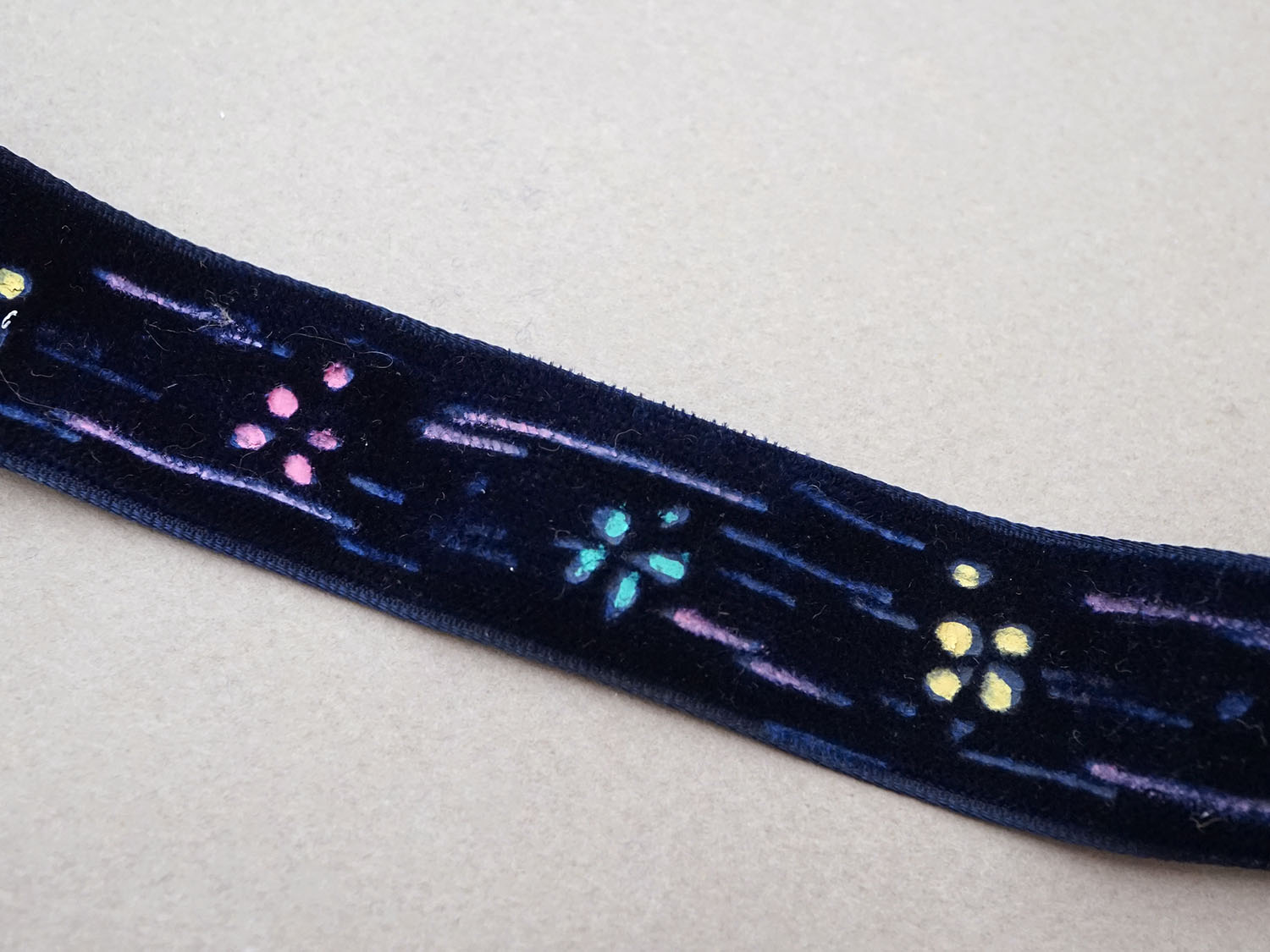 未使用 アンティーク 花のハンドペイント ベルベットリボン ダークブルー PON 6537