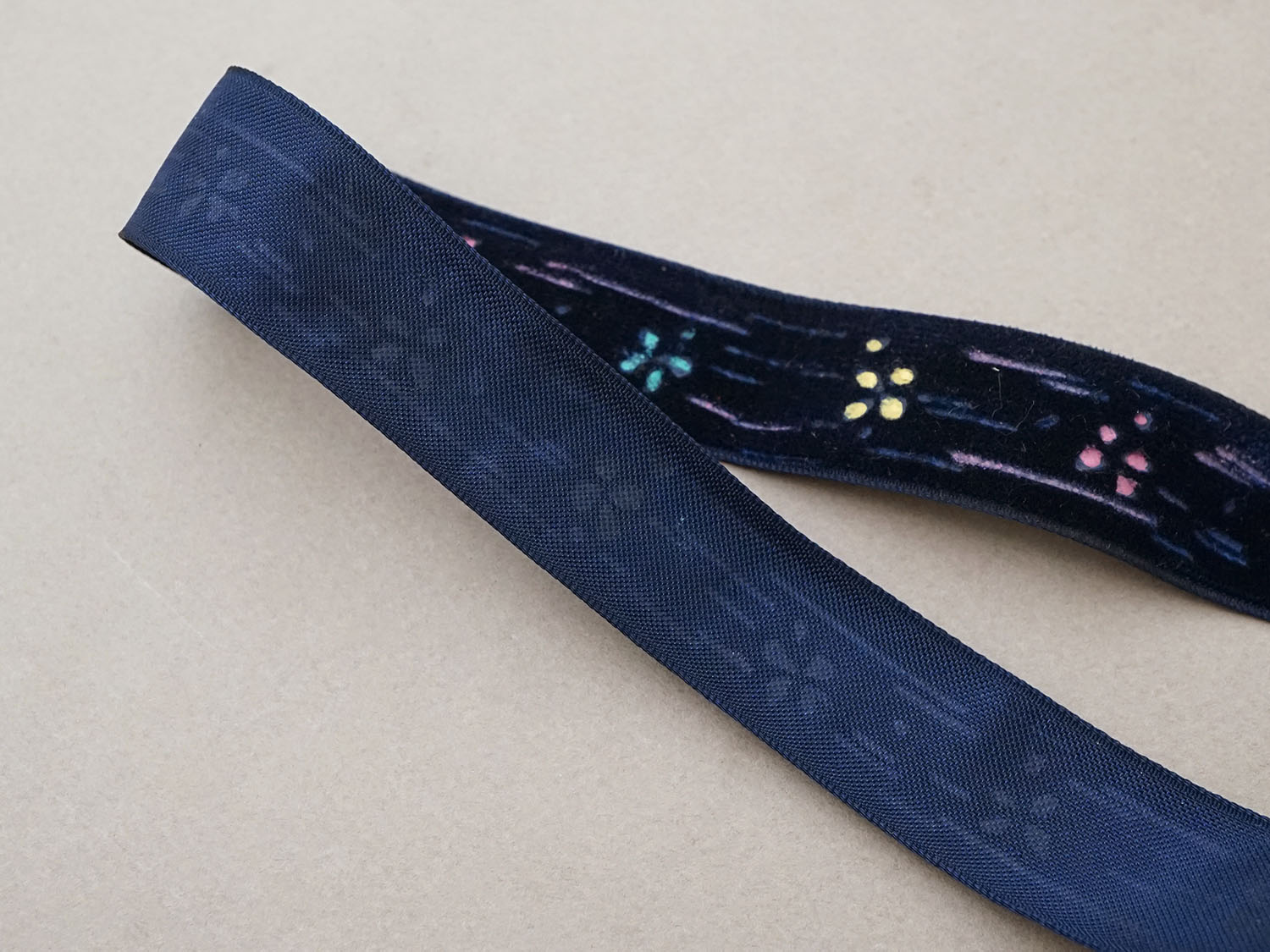 未使用 アンティーク 花のハンドペイント ベルベットリボン ダークブルー PON 6537 [AM16045]