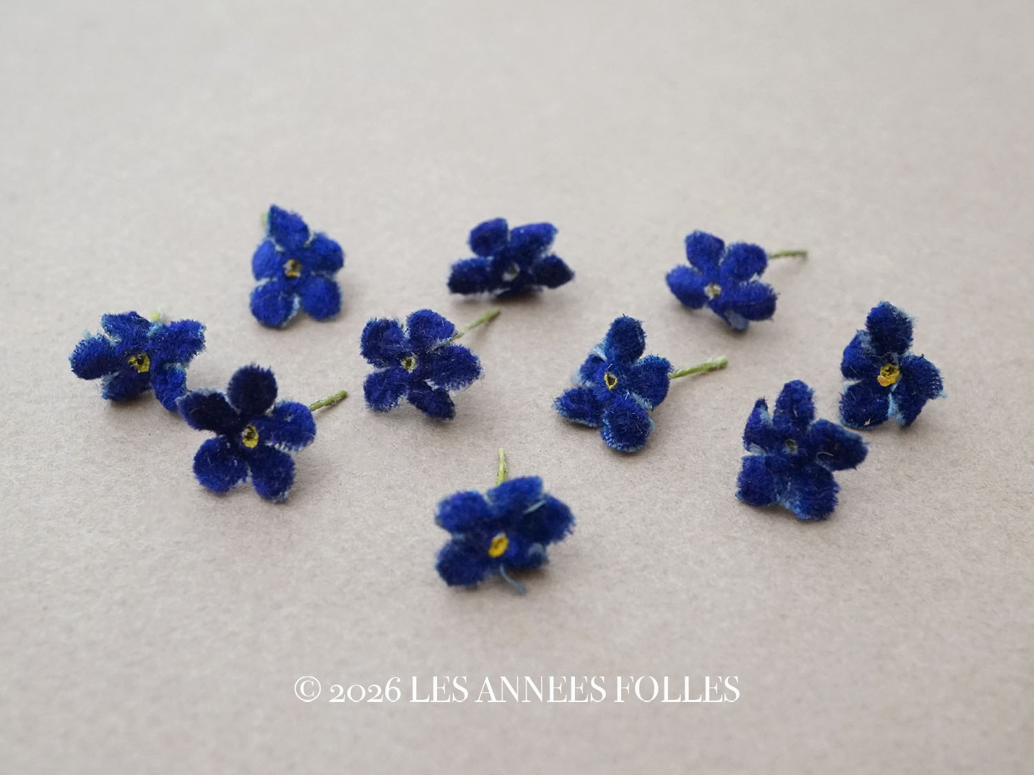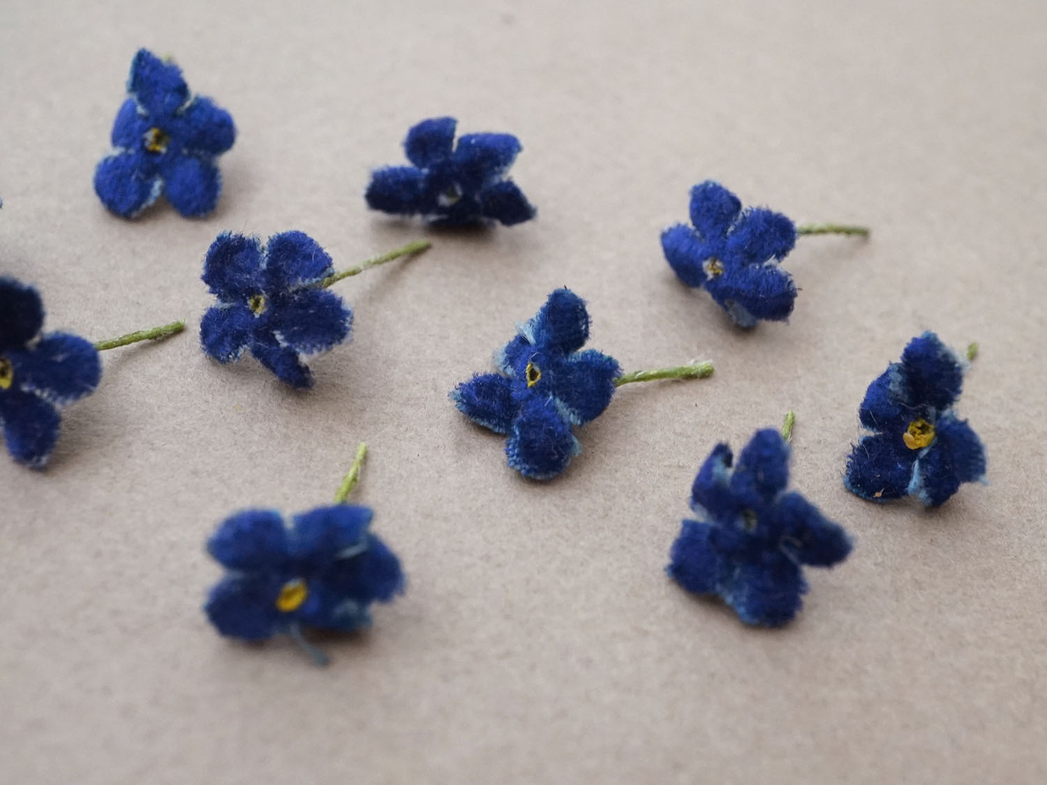 ダークブルーのベルベットの勿忘草の布花10ピースのセットです。