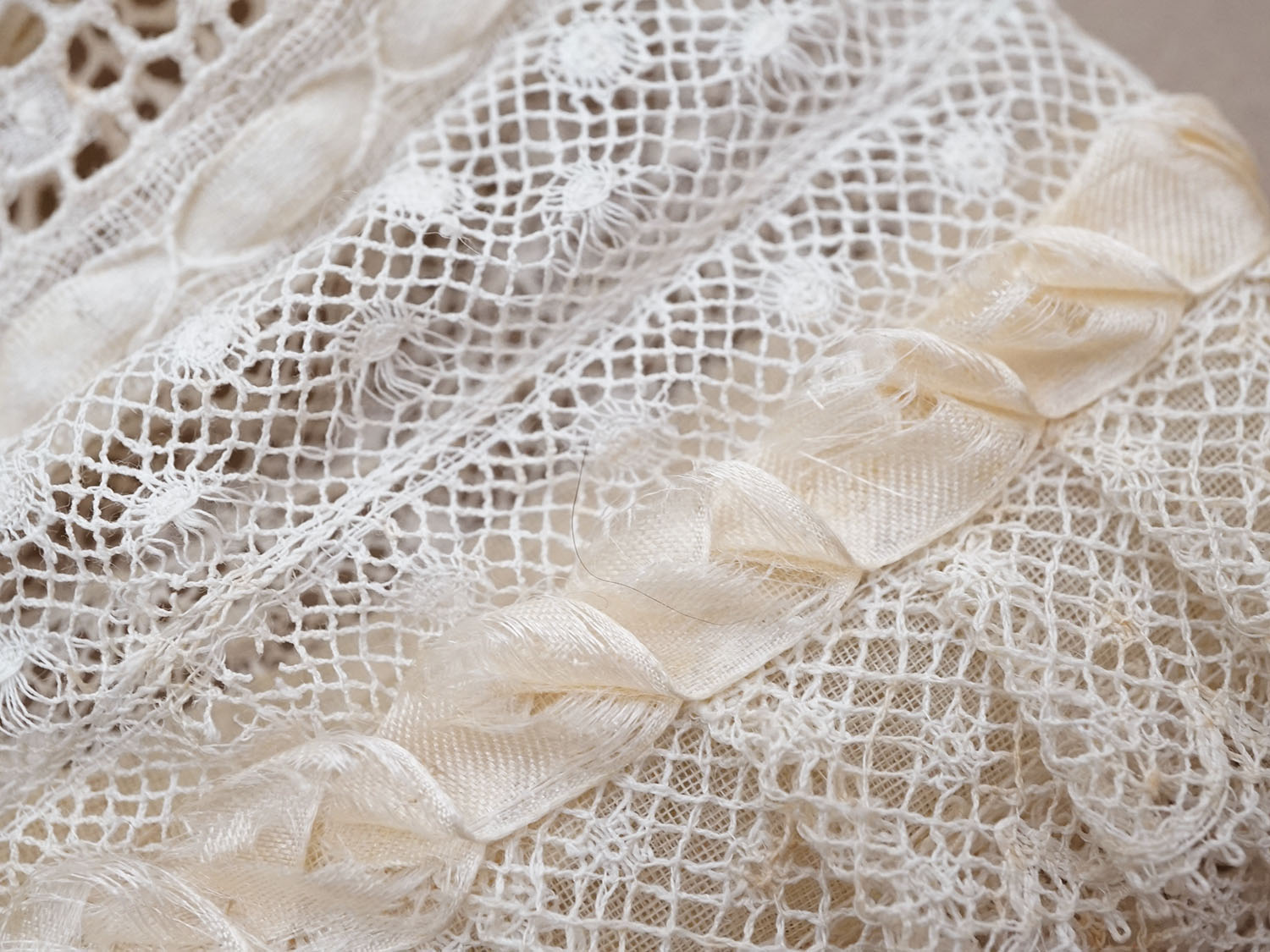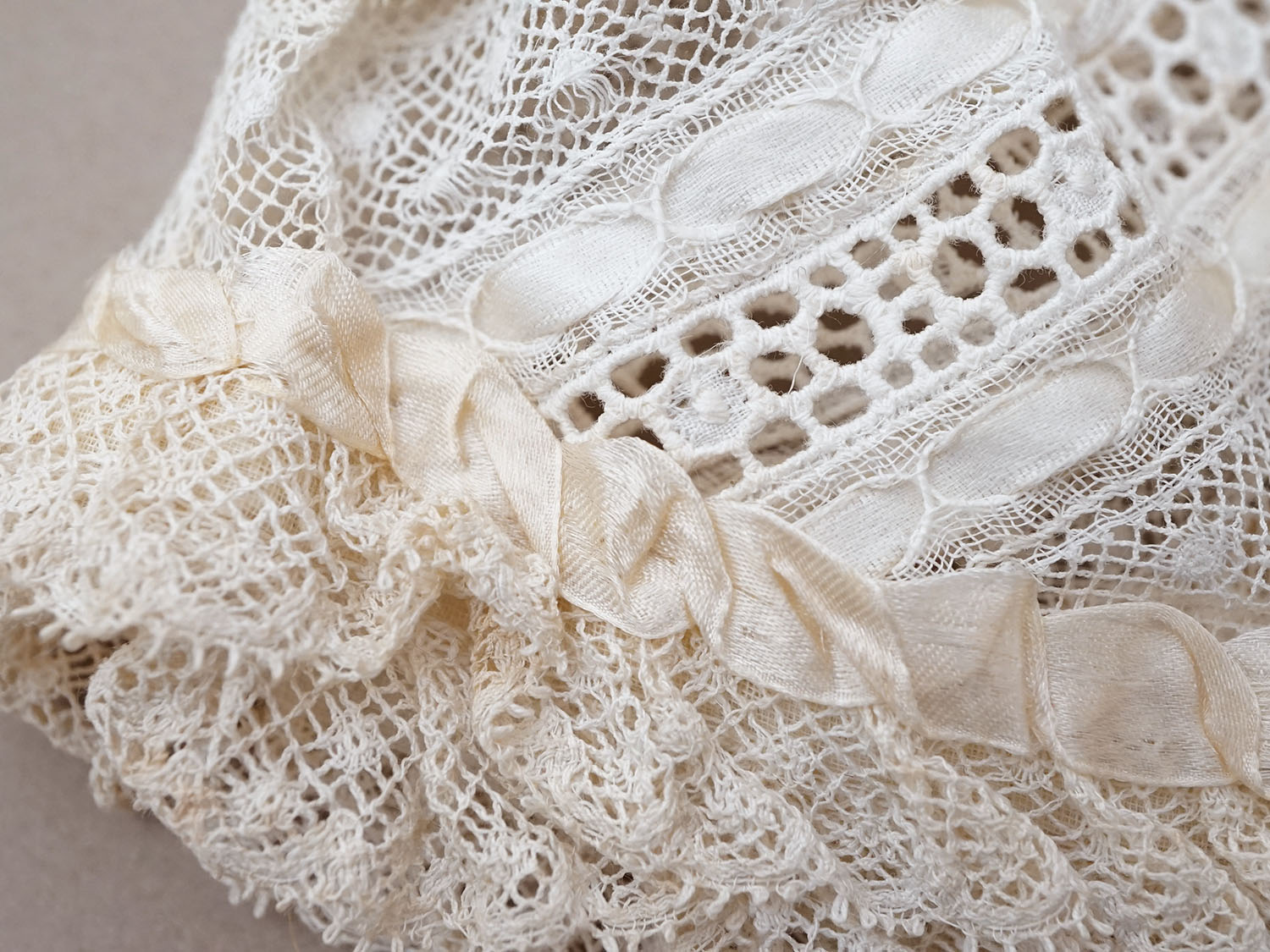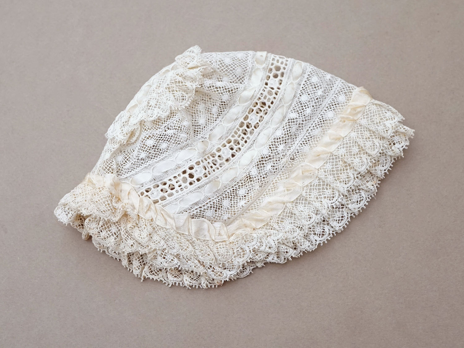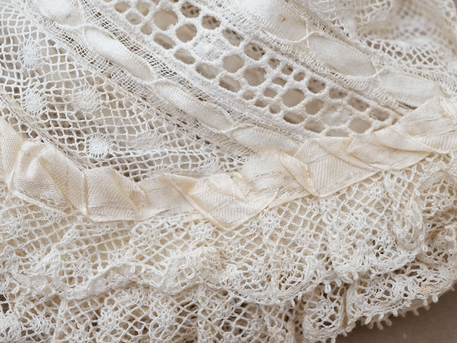 *蚤の市*アンティーク ベビーボネ レース&シルクリボン