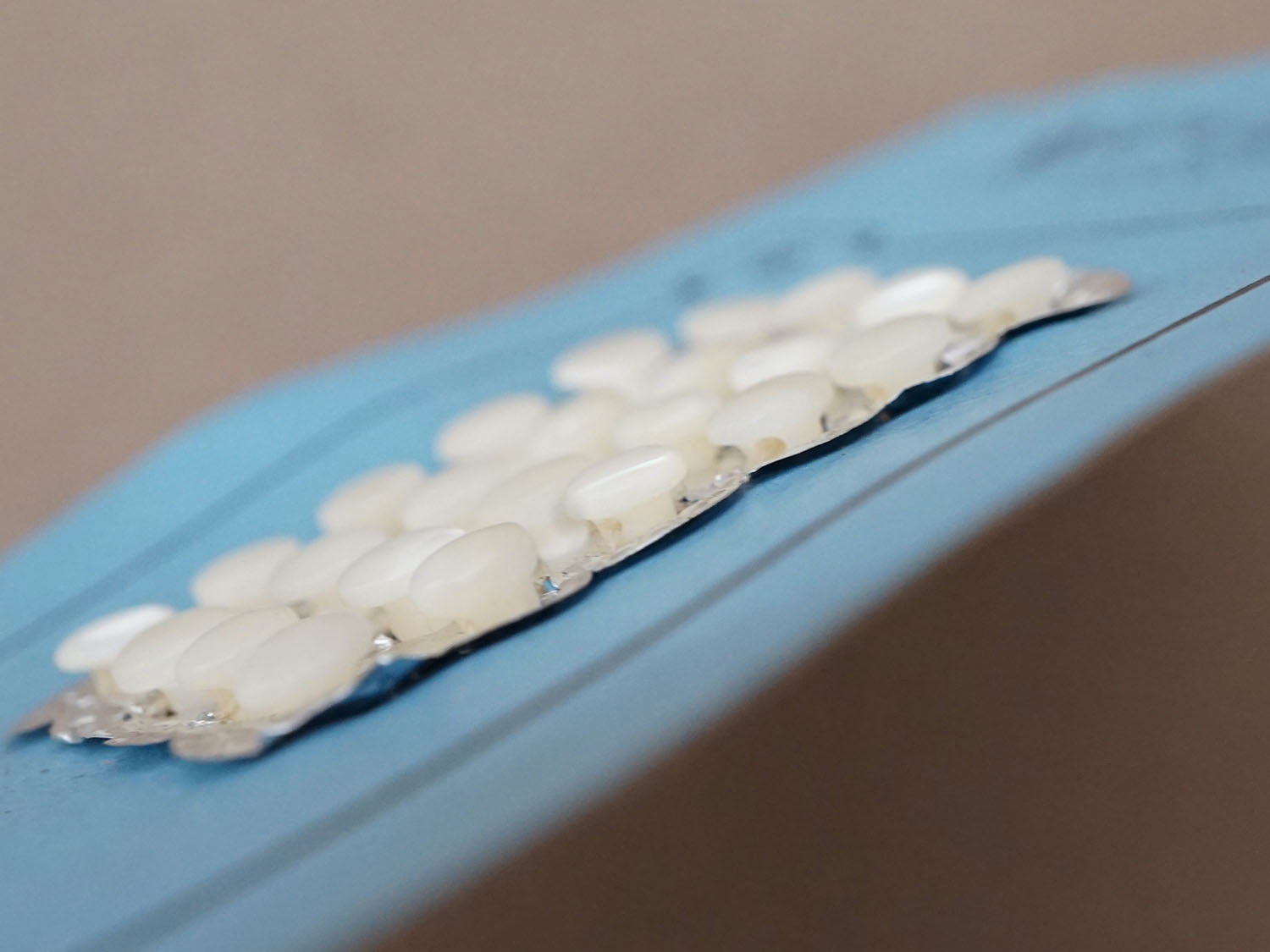 マザーオブパールでホワイト系の多くのボタンは若干黄色みを感じる暖かな色合いですが、